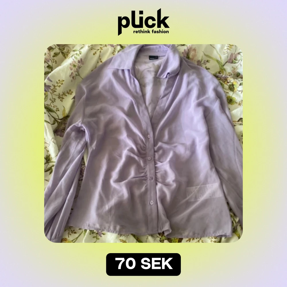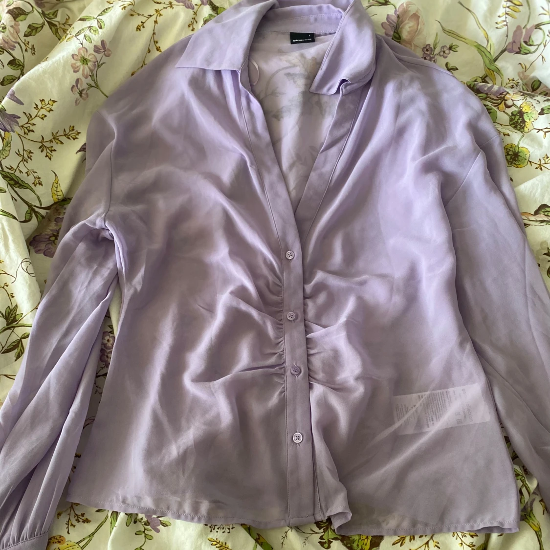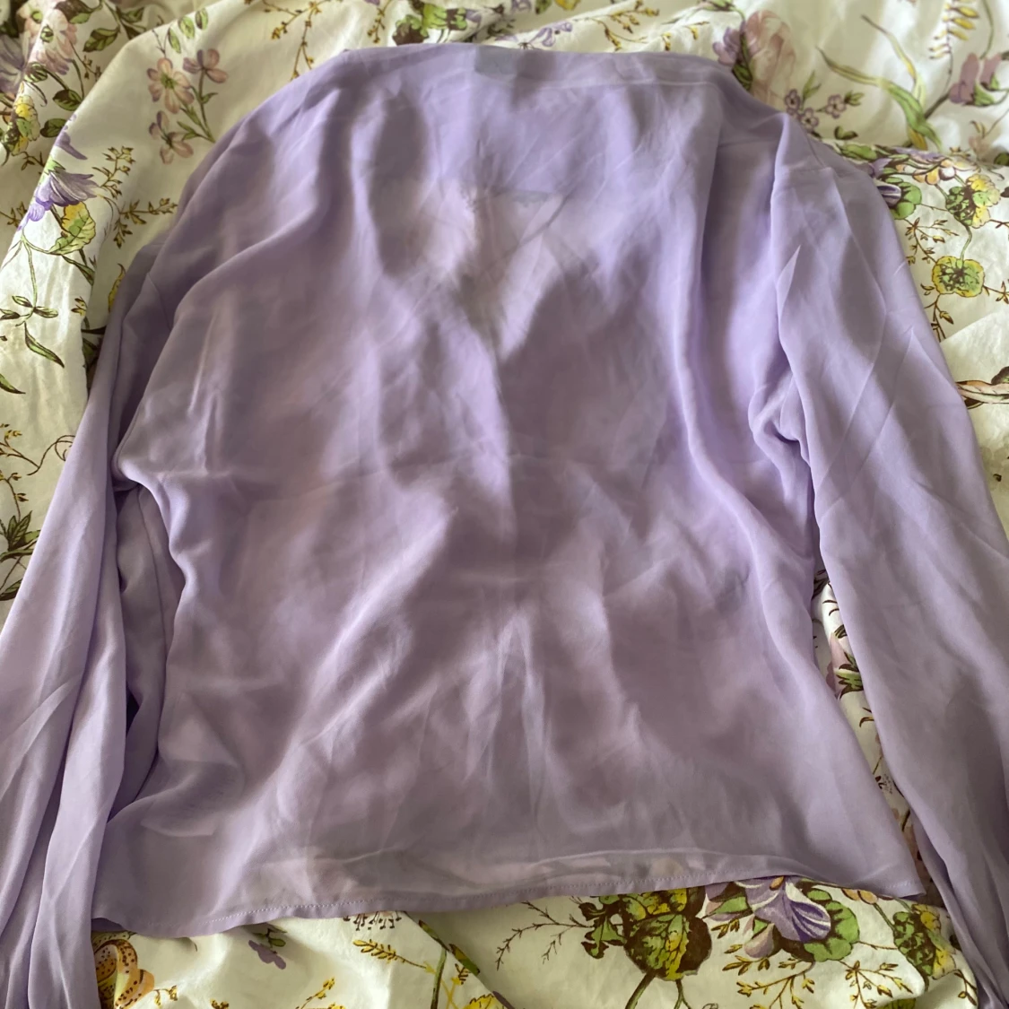 Genomskinlig lila blus i storlek L, men passar även fint på mindre storlekar