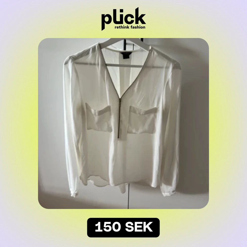 Vit blus med justerbar dragkedja, har två små fläckar på framsidan (se bild). Skön passform