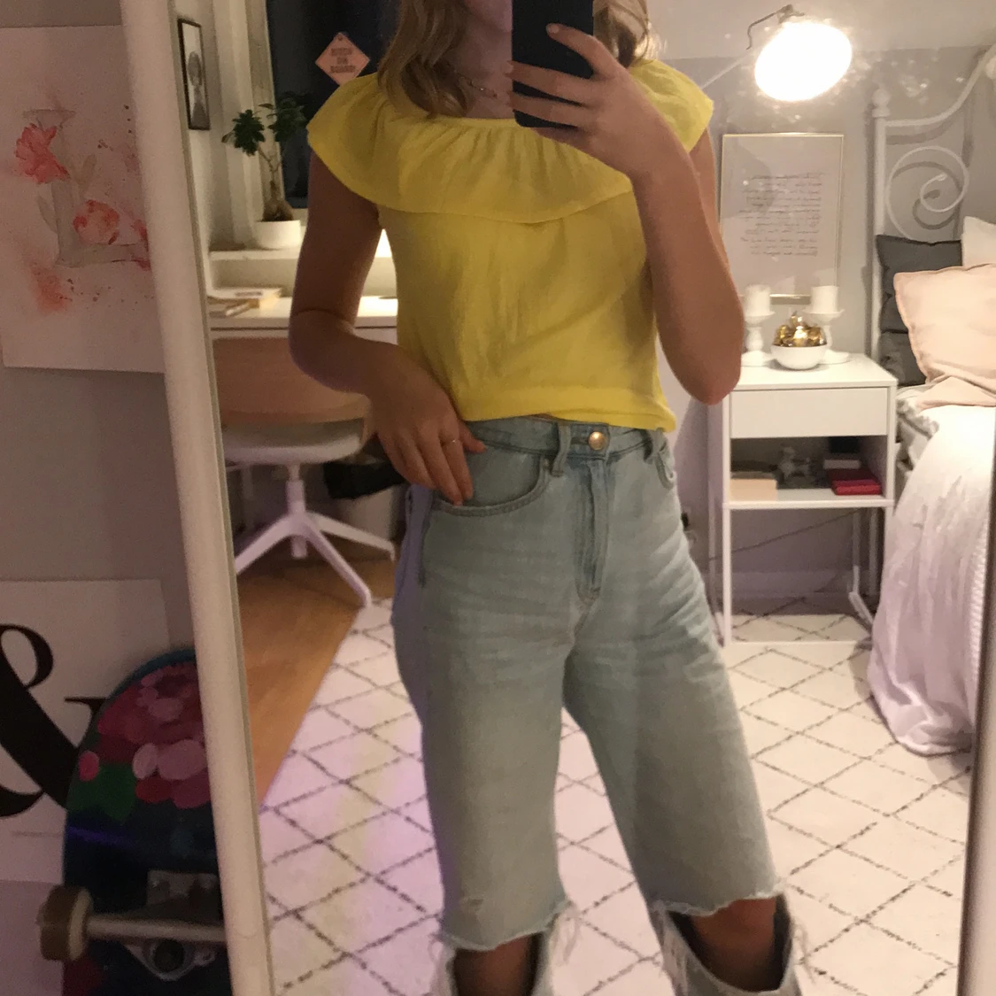 Gul offshoulder topp