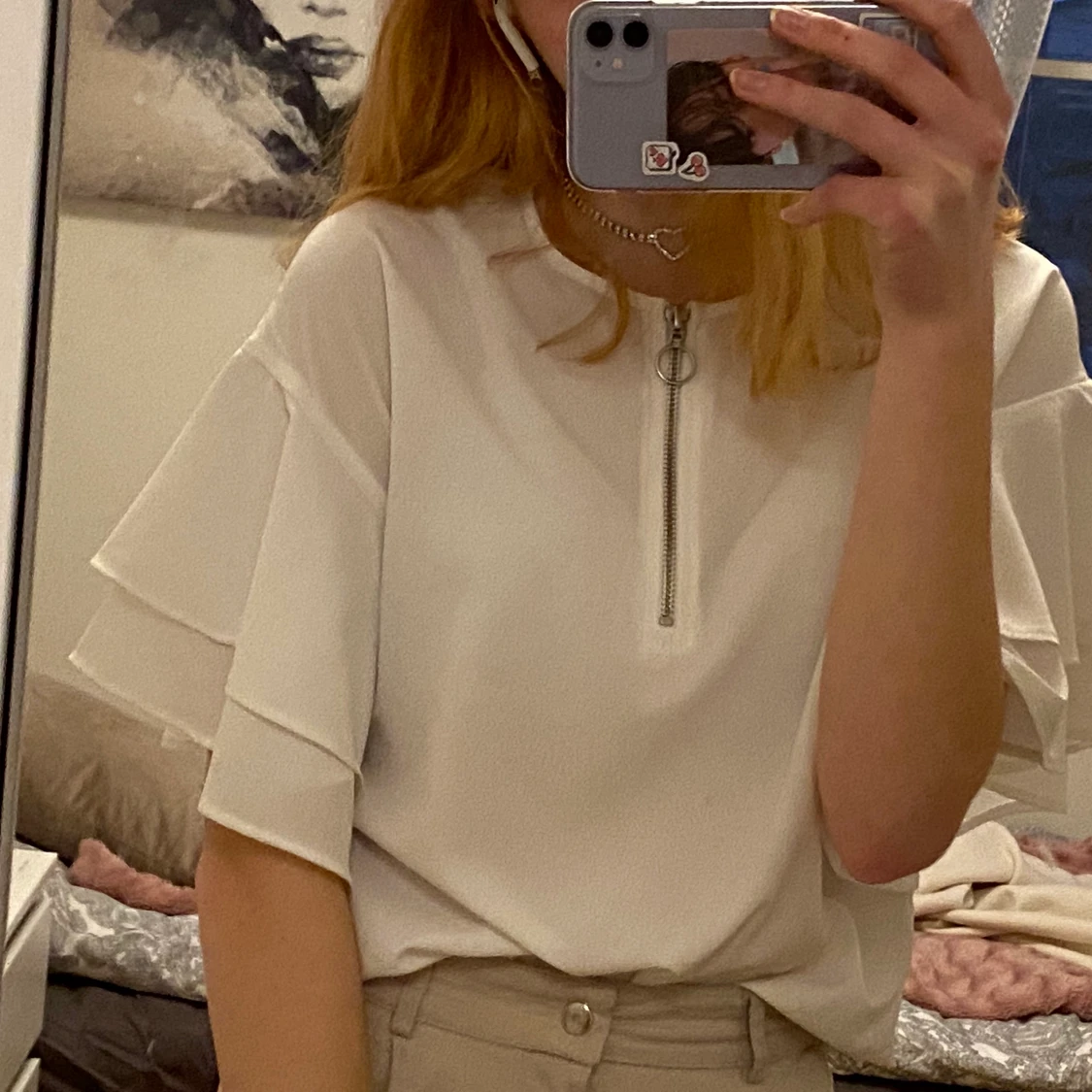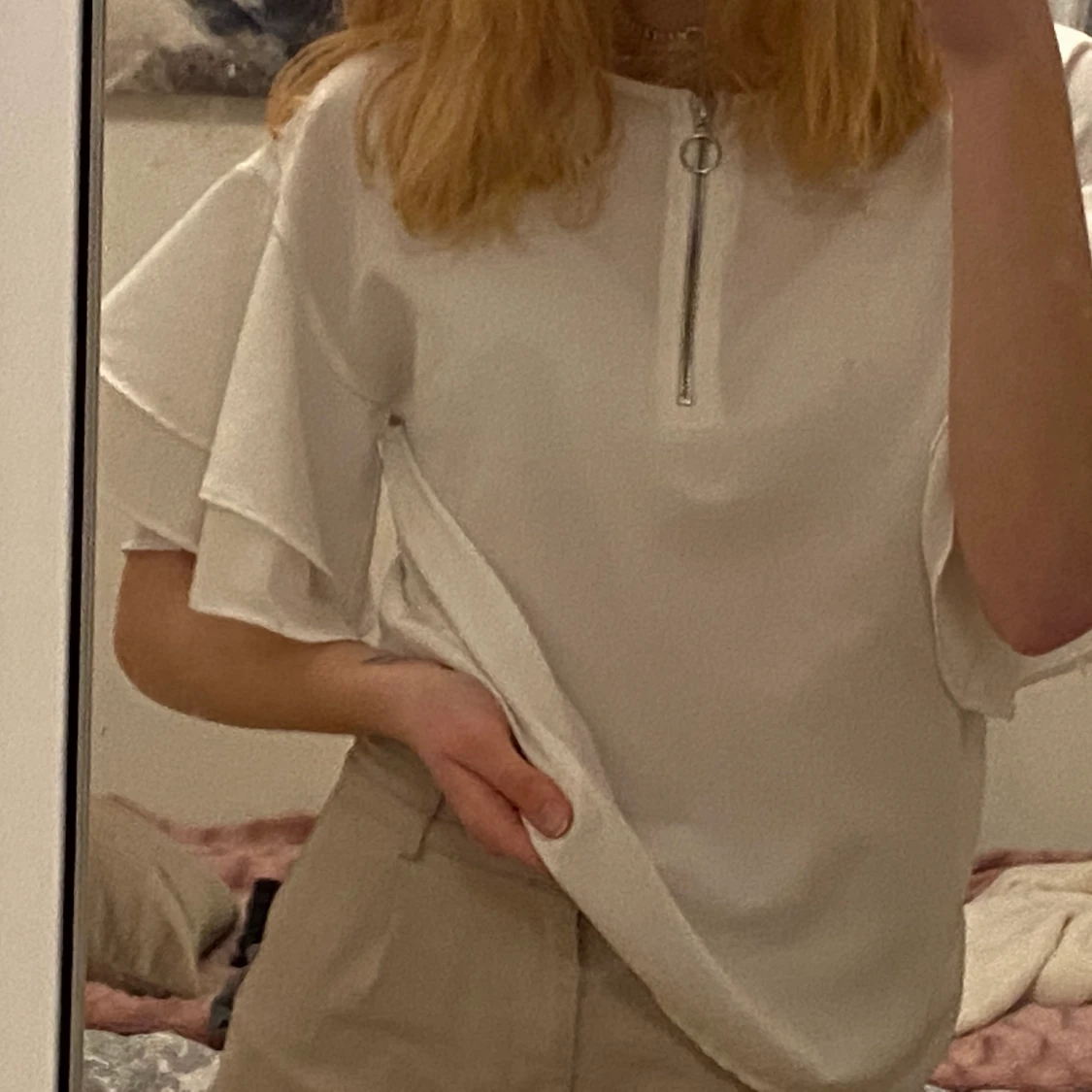 Vit blus med dragkedja från Lindex, lite genomskinligt tyg. Bra skick, använt fåtal gånger. Storlek 152 men passar XS