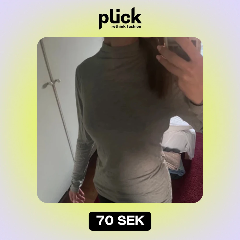 En grå tröja, som sitter lite tajt med en lite högre hals. Skulle säga att den är relativt stor i storleken🩷