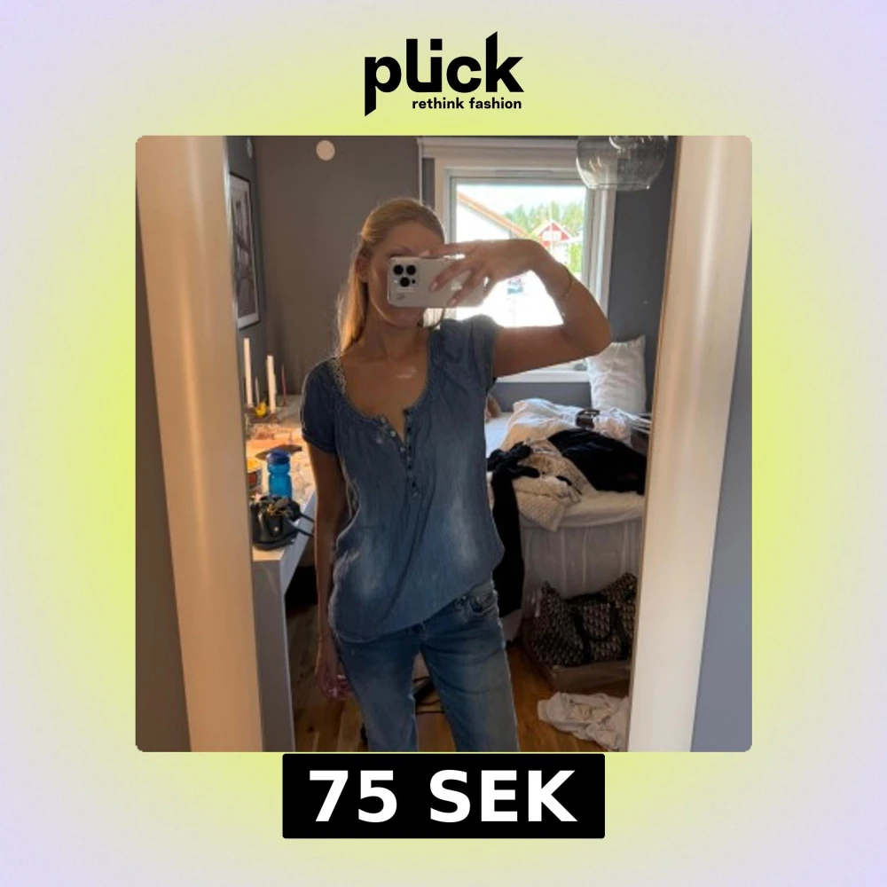 Topp i jeans med knappar och puffärmar, från Lindex i storlek s✨