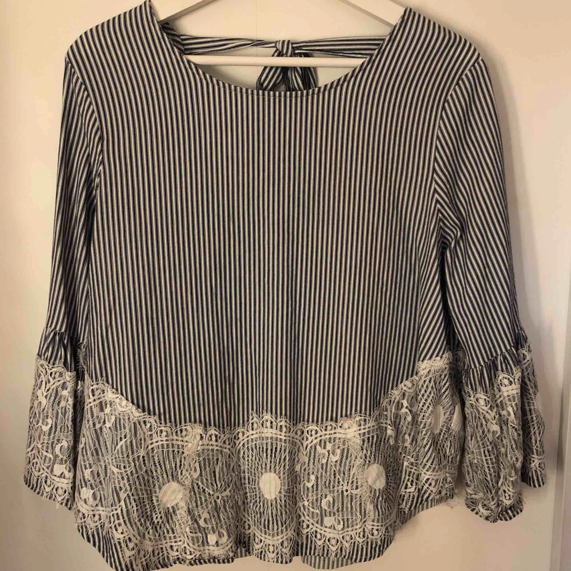 Fin blus i fint skick! Använd ett fåtal gånger. Säljer den för inget jag använder längre och så har jag en liknade. Den har en fin rygg och spetsen nedtill är en fin detalj. Köparen står för frakten eller möts upp i Eskilstuna!