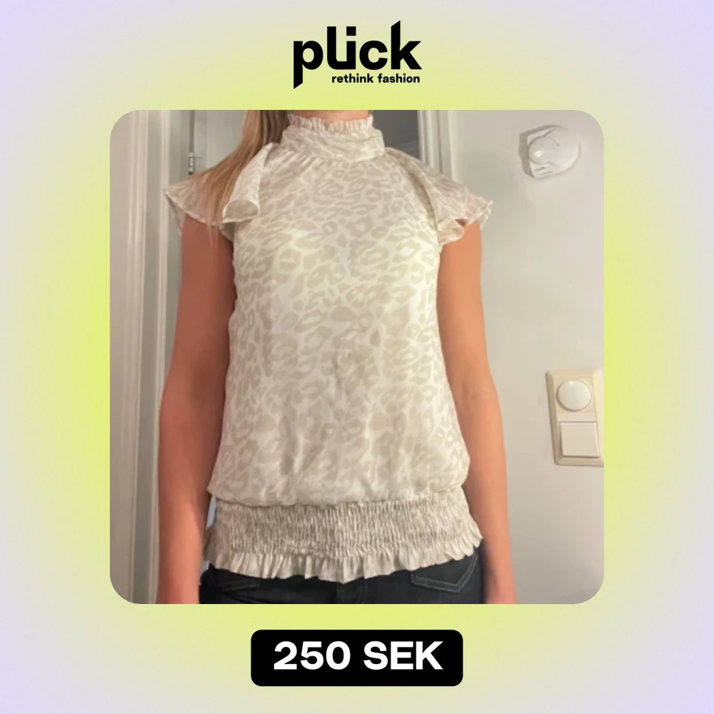 Leopardmönstrad blus i vit och beige. Storlek sđ