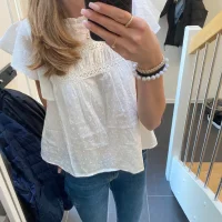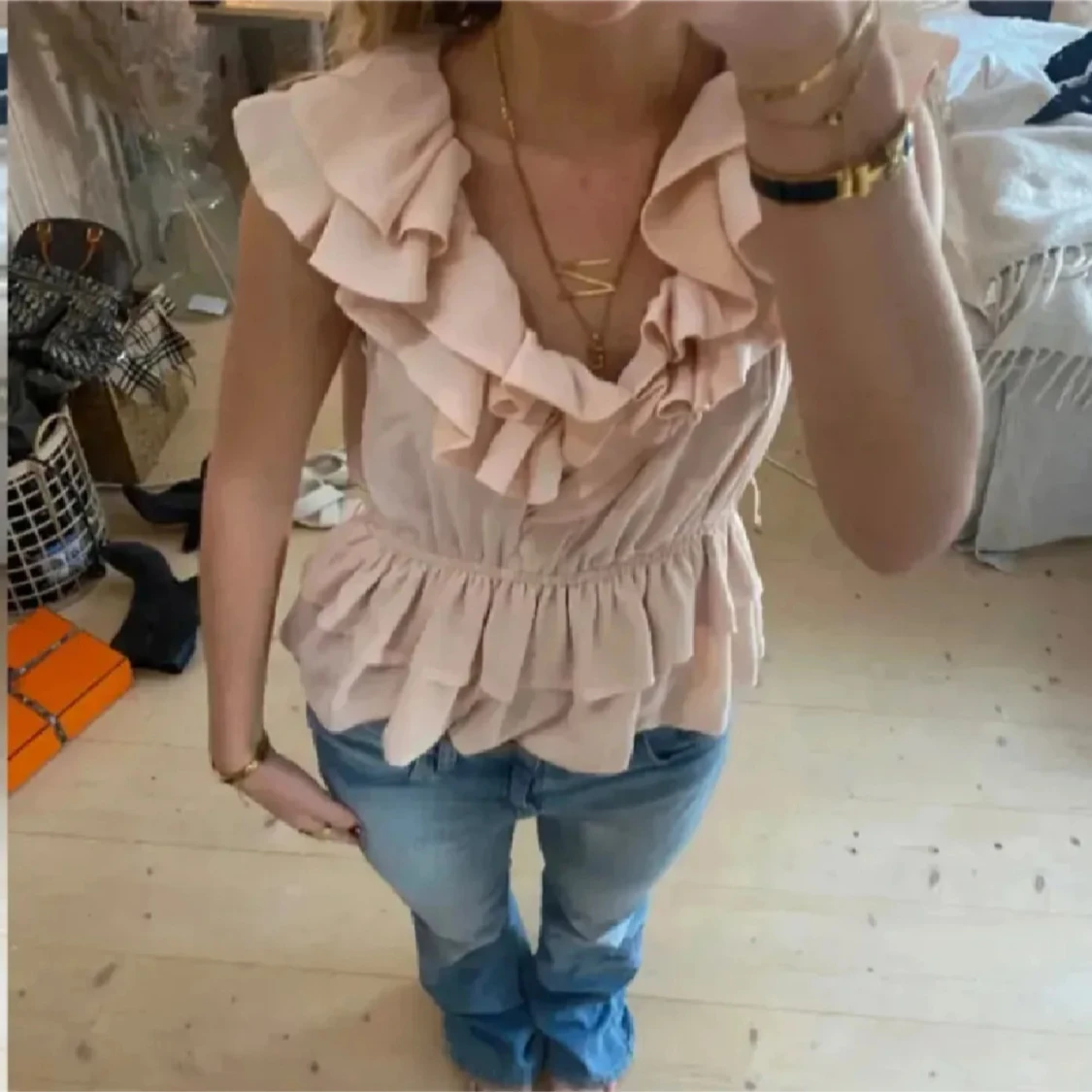 Säljer en söt beige topp med volanger och elastisk midja som ej säljs längre! (KOMMER EJ GÅ NER I PRIS)