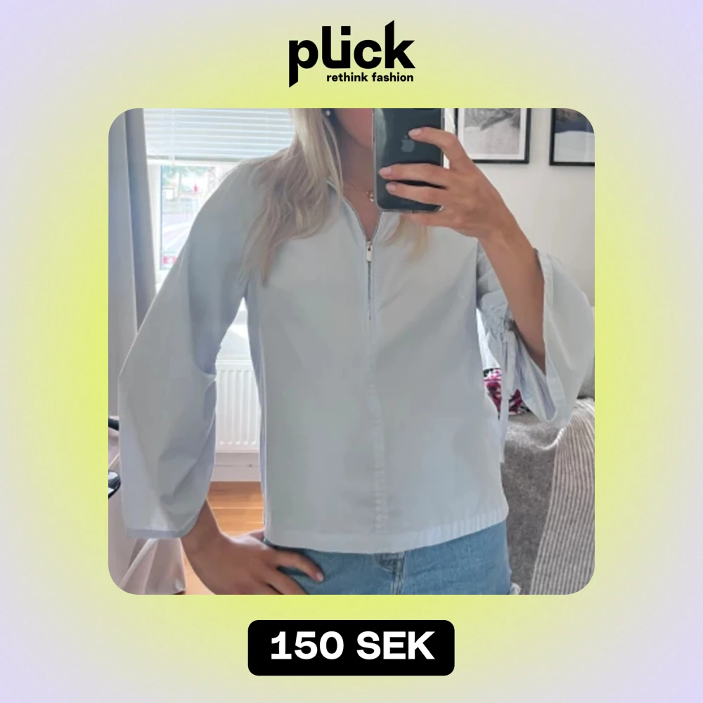 Såå söt ljusblå blus🥰Dragsko i ärmarna som man kan dra upp för att ändra ärmens längd!