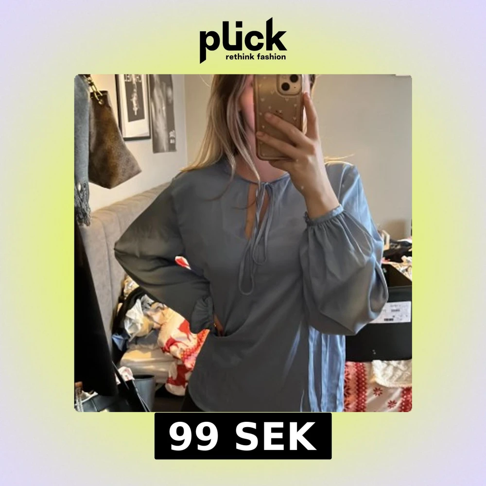 Säljer En ljusblå blus från stockhlm storlek s, satin/silkes material väldigt fin på.