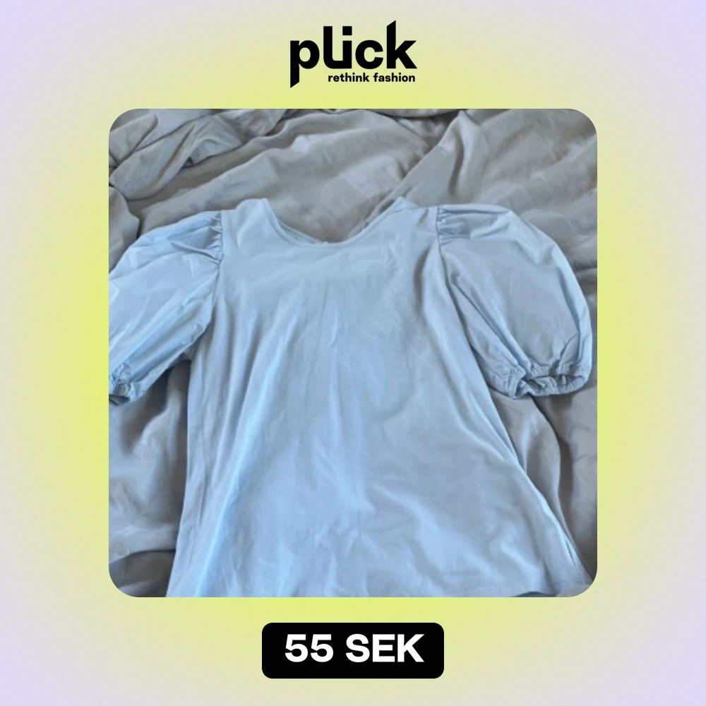 Söt ljusblå topp/ t-shirt med puffiga armar. Säljer pga ingen användning. Bra kvalitet, använt typ 2 ggr. Passar till det mesta