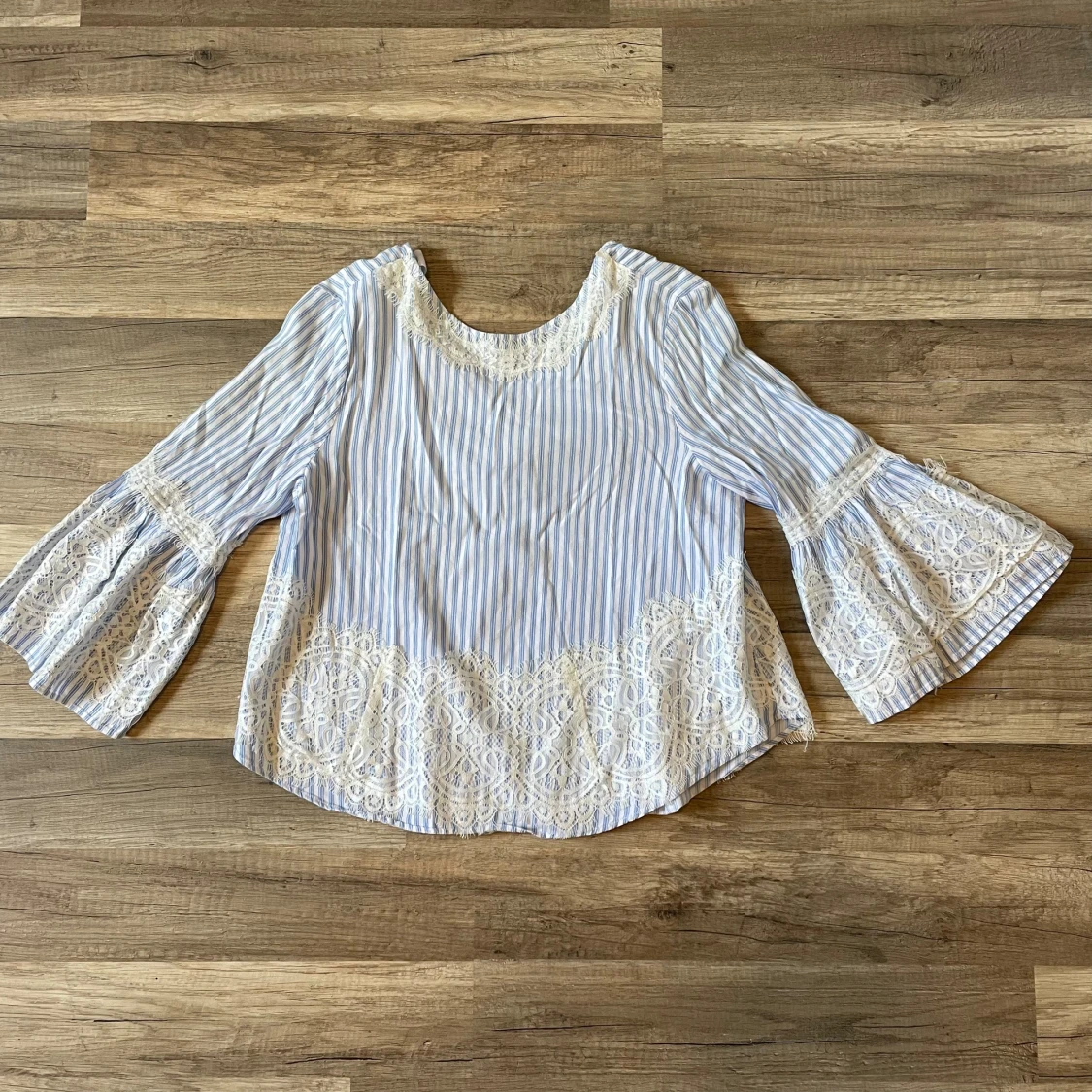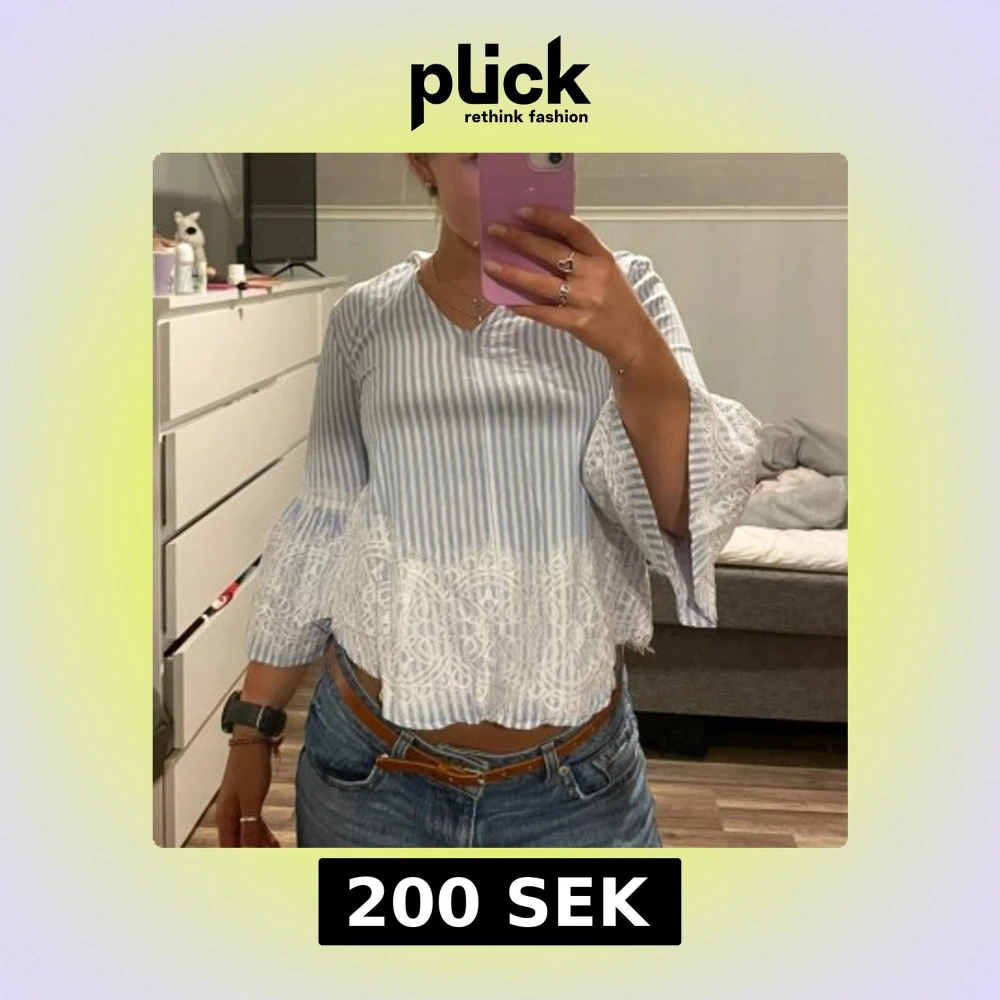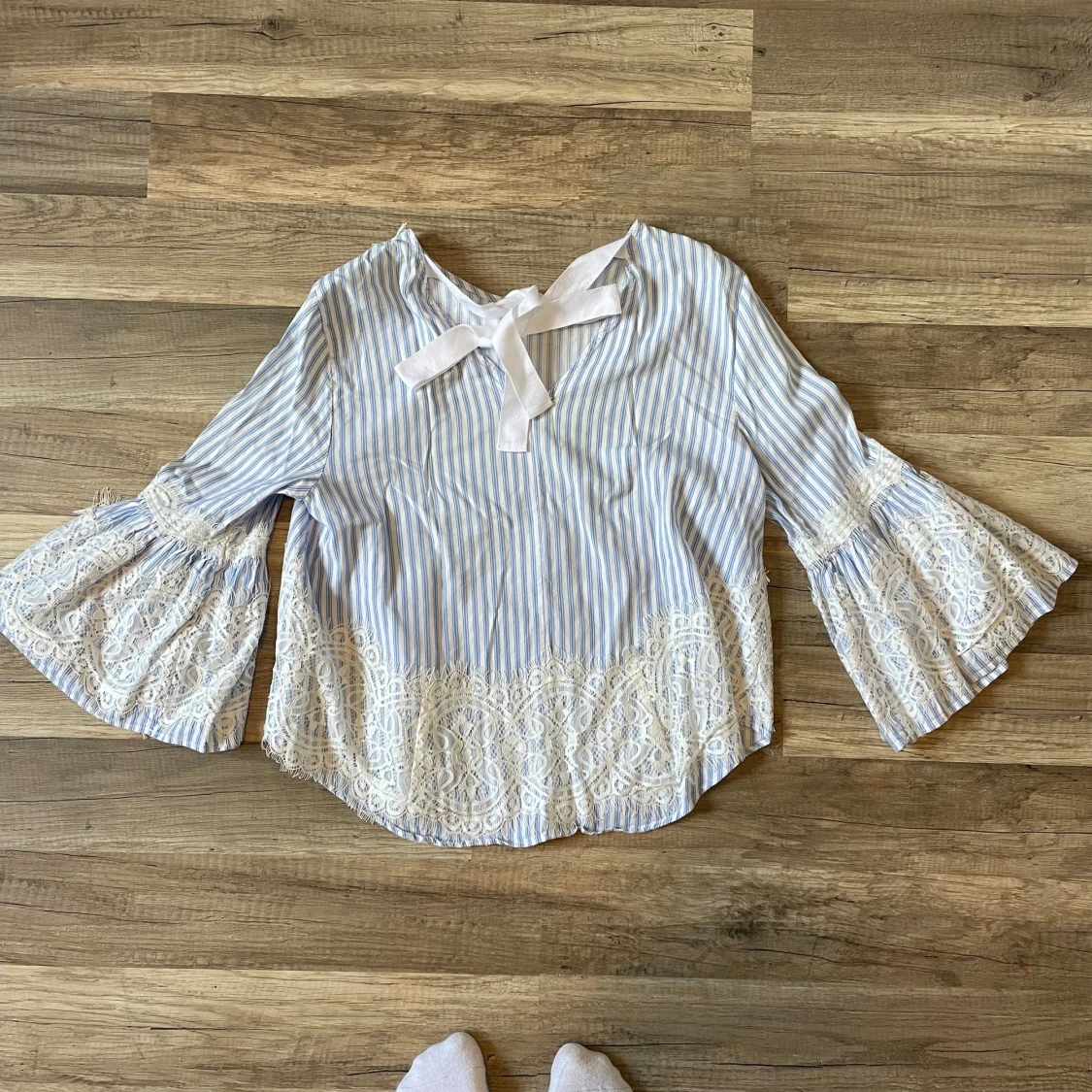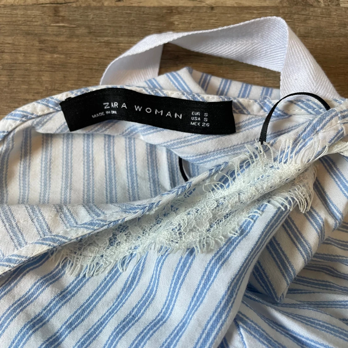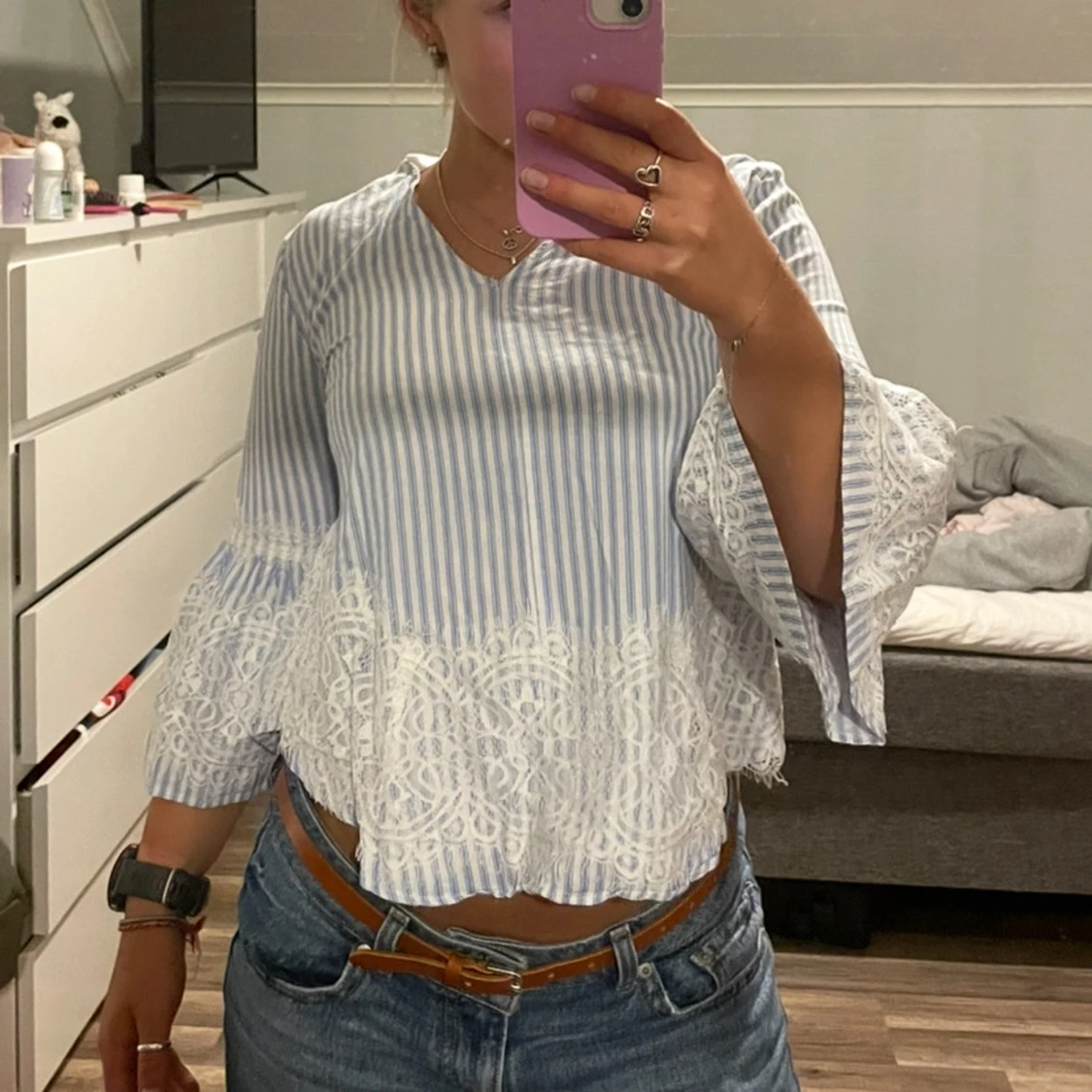 Randig blus ifrån Zara med spets. I storlek S. Band som man kan knyta bak. I väldigt fint skick!