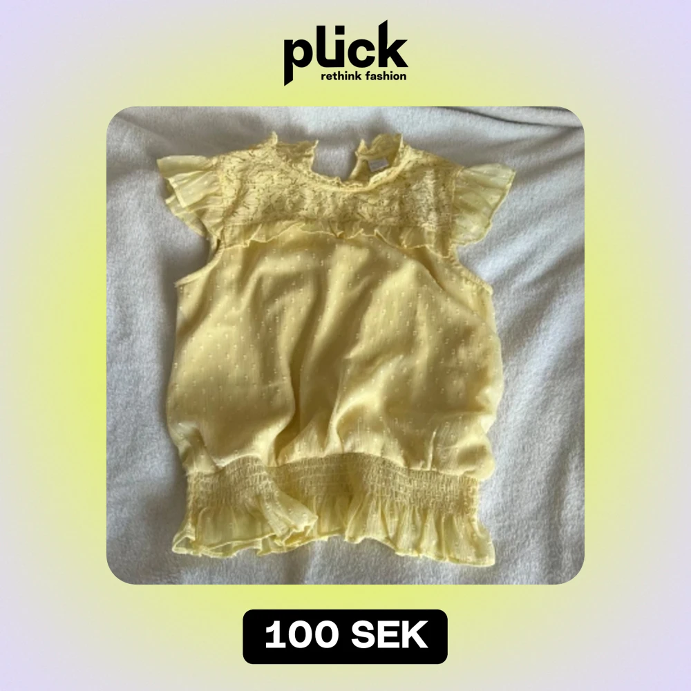 Ljusgul blus från Lindex med volanger. Storlek 146/152 men passar mig som har XXS/XS. Bra skick. Skriv privat för fler frågor 🩷