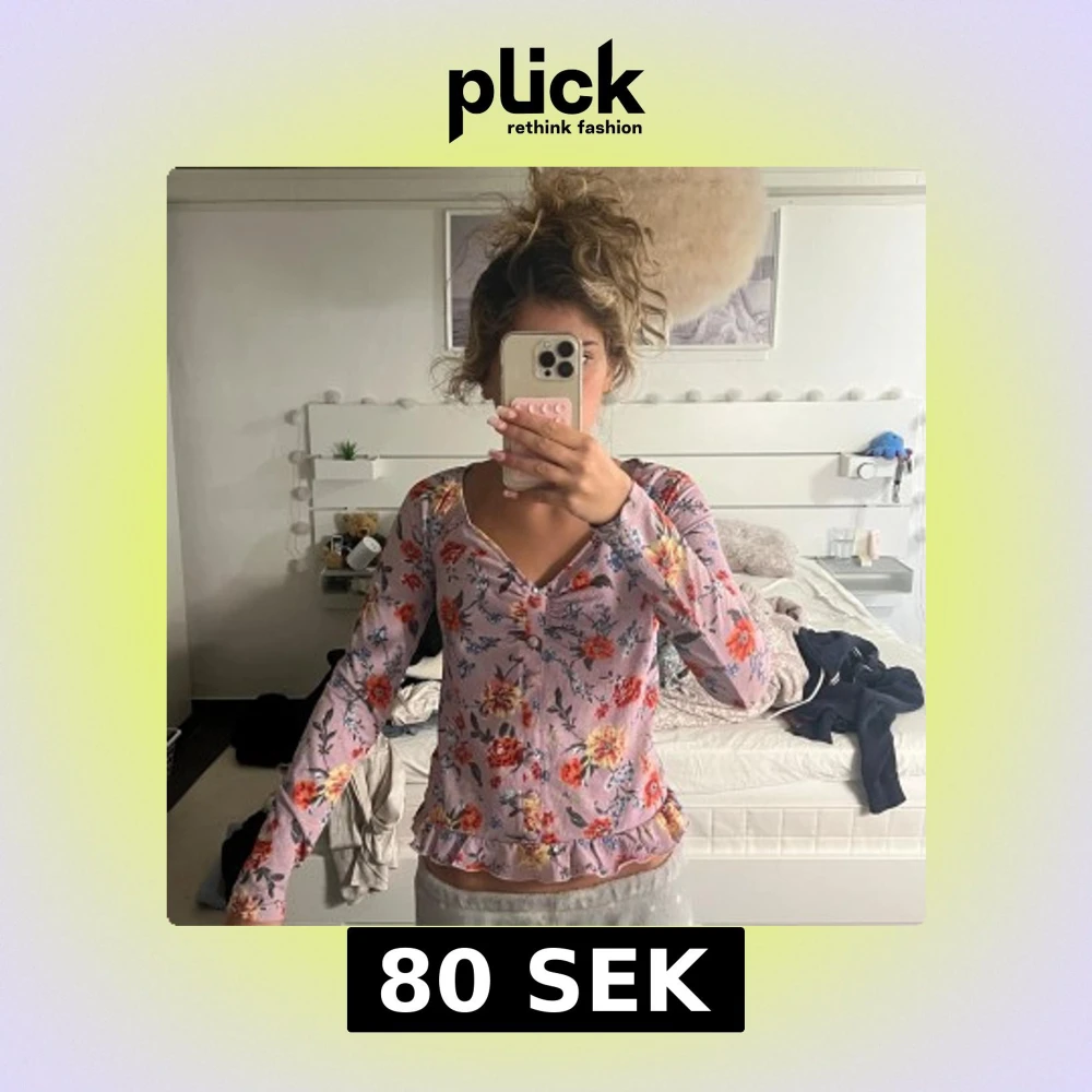 Ljuslila blommig blus med volang