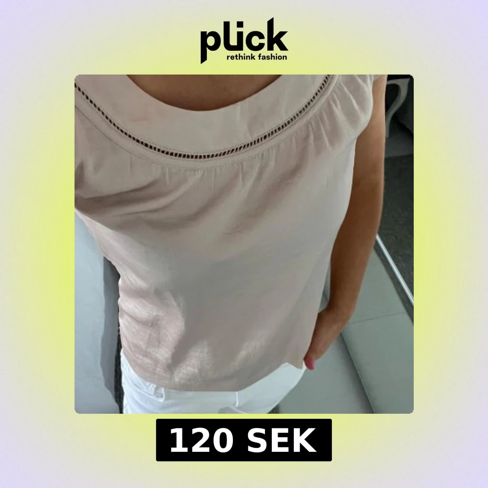 Säljer en ljusrosa topp från H&M med korta ärmar och mönster vid halsringningen. Så fin till familjemiddagar osv