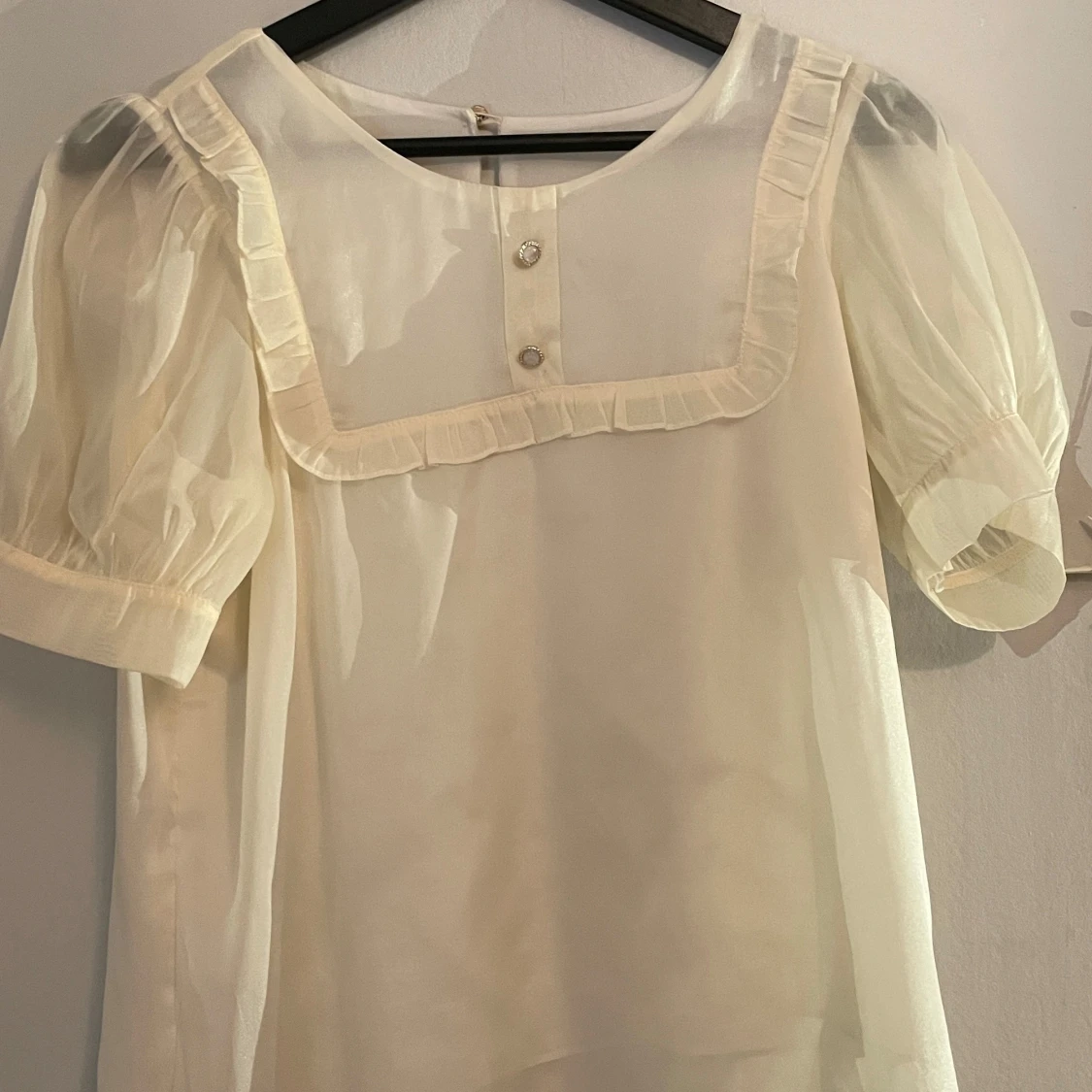 Helt ny, oanvänd svart blus, står ingen storlek i tröjan men skulle säga storlek S! Står inte heller vilket märke!