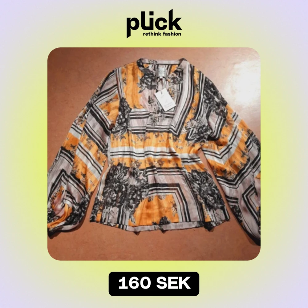 En luftig blus, mönstrad i gult, svart och vitt. Helt ny från Second Female, storlek S. Kostade 949->599 -> mitt pris 160 kr.