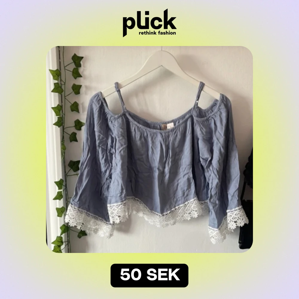 Väldigt luftig croppad blå sommartopp/blus från H&M i stl 38, inga tecken på användning🙌🏻Köparen står för frakten🚀
