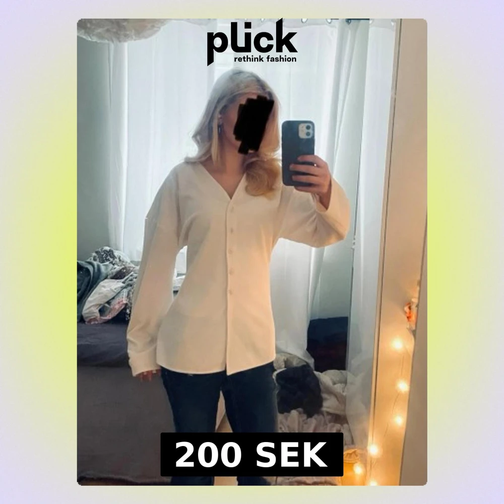 Stilren vit blus med v-ringning och knäppning framtill. Blusen har lång ärm och en rak, något lös passform. Perfekt att matcha med jeans eller kjol för en trendig look.
