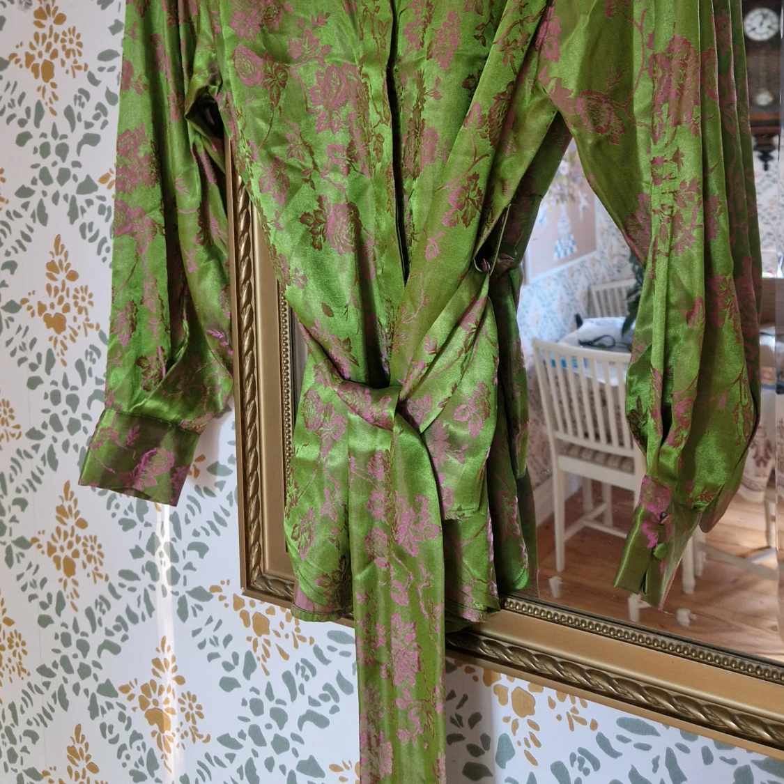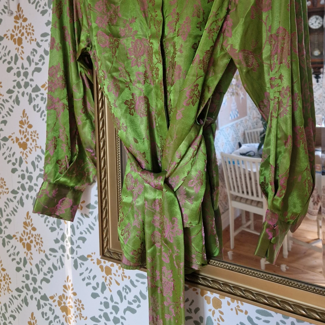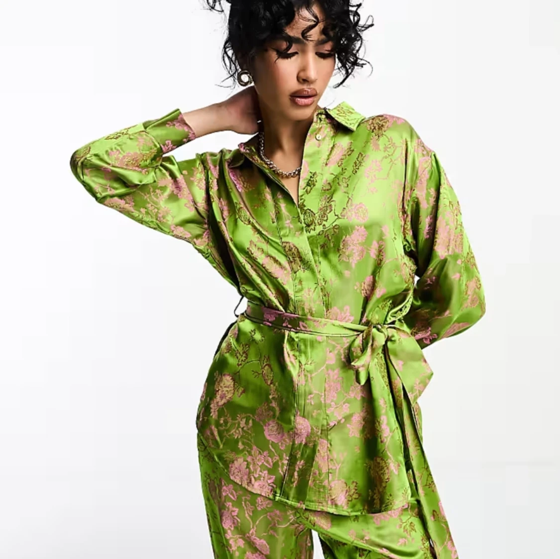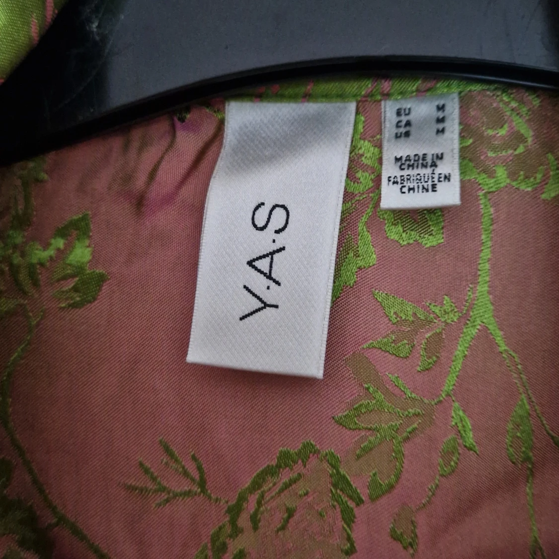 Yas grön och rosa skjorta/blus i jacquard med skärp. Storlek M Inga anmärkningar