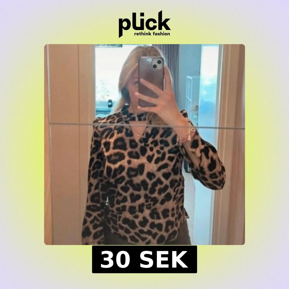 Superfin trendig blus i leopardmönster. Cool i halsen med unik urringning.