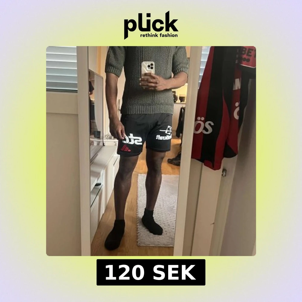 Svarta sportiga shorts från Starkraft med vita och röda tryck på framsidan. De har en loose passform och är perfekta för träning eller fotboll. Materialet är lätt och troligtvis polyester, vilket gör dem sköna att röra sig i. Snyggt och stilrent designade för dig som gillar sport.