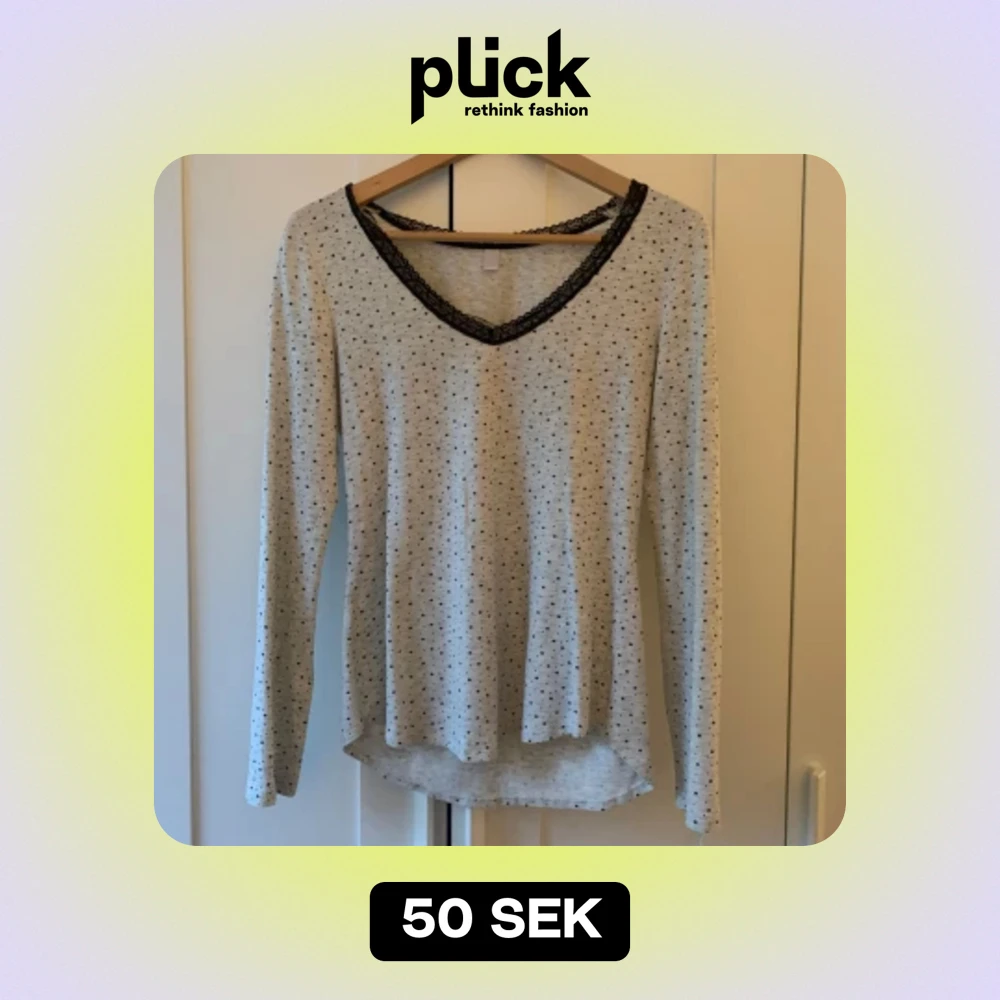 Långärmad tröja med stjärnor och en fin spets i kragen,tunt material, lite längre bak