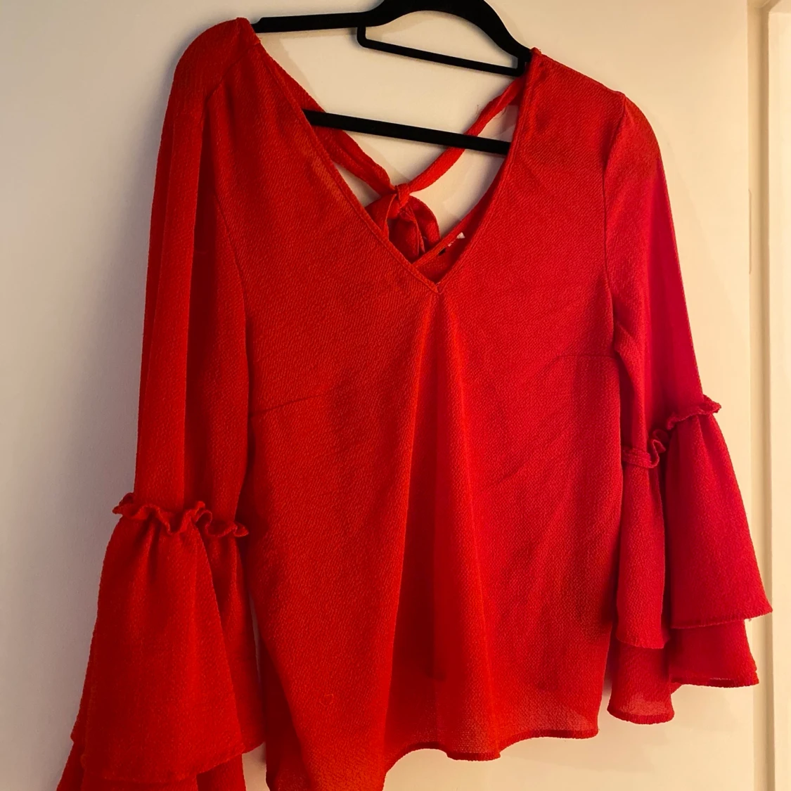 Jättefin röd tröja, lappen är tyvärr borta men jag gissar på att det är storlek M. Passar perfekt till fest eller till vardags☺️