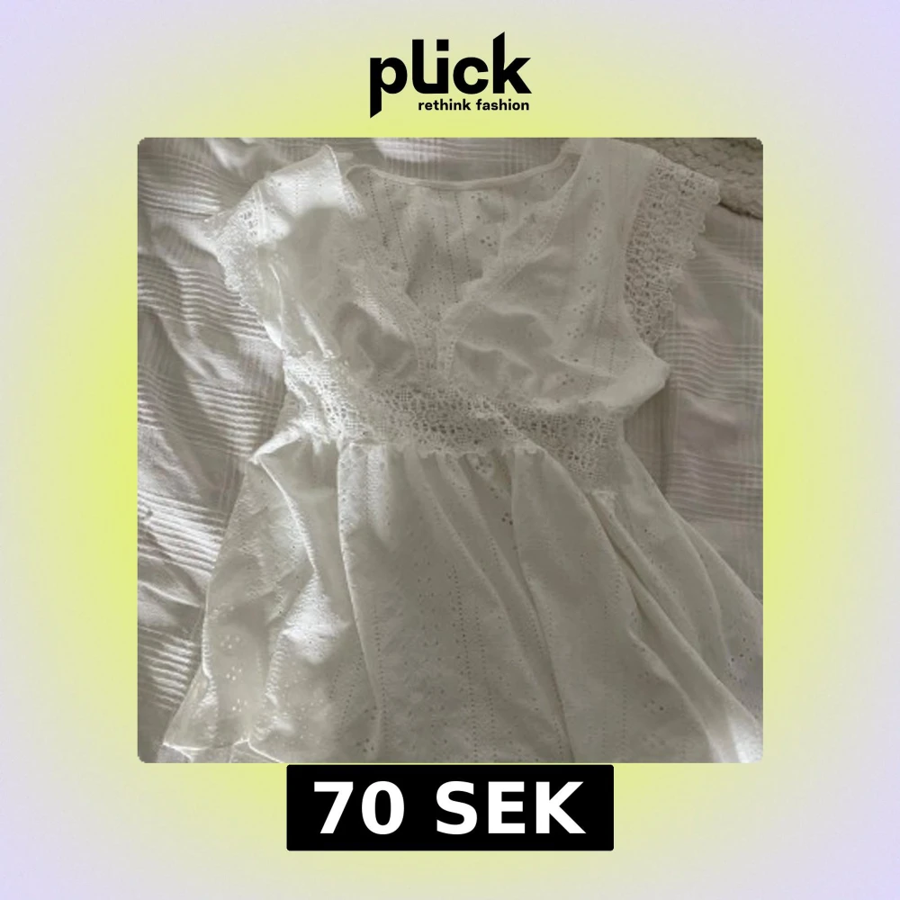 Superfin vit blus med spets vid ärmar och midja. Den är v-ringad. Perfekt för sommarens alla tillfällen, med romantiska vibbar och luftig känsla. Köpt på vinted och finns ej en lapp