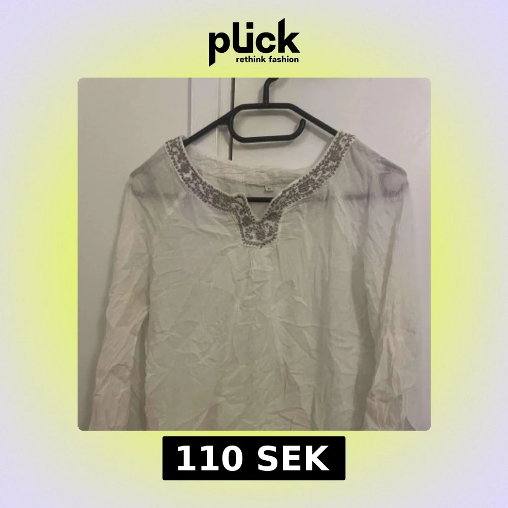 Säljer en vit blus med vackra broderier runt halsen. Blusen har långa ärmar och en luftig passform, perfekt för en avslappnad stil. Den är tillverkad i ett lätt material som ger en skön känsla.