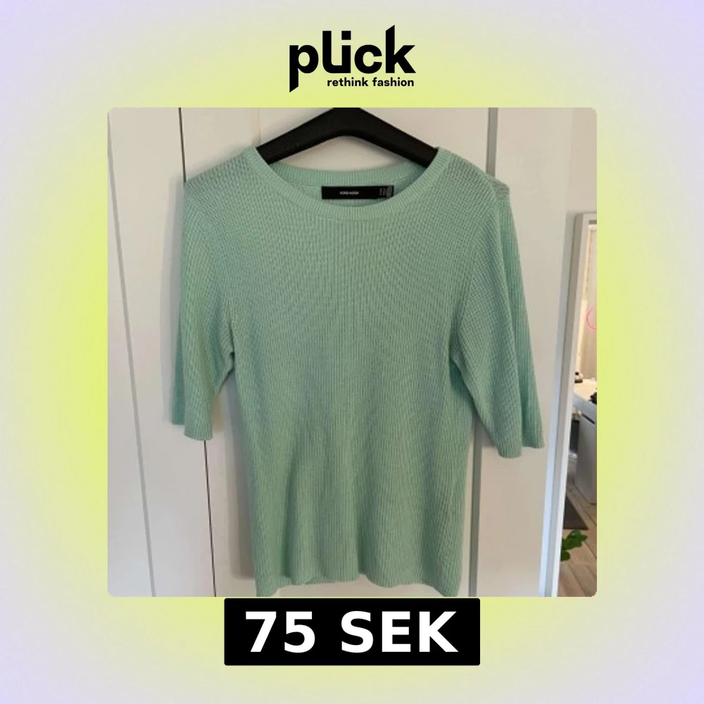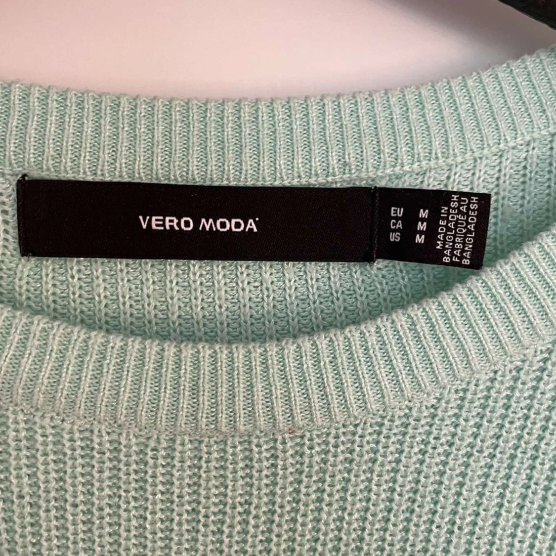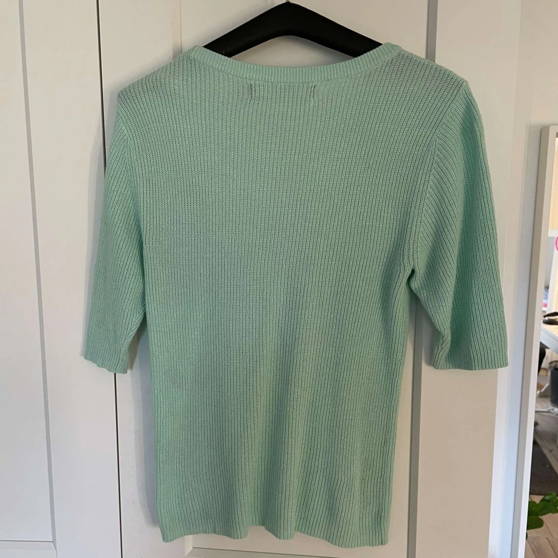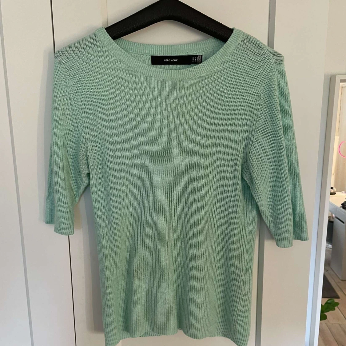 Säljer en mintgrön stickad t shirt från Vero Moda. Tröjan har rund halsringning och tre kvarts ärm💗 Storlek M💗Använd inte köp nu!