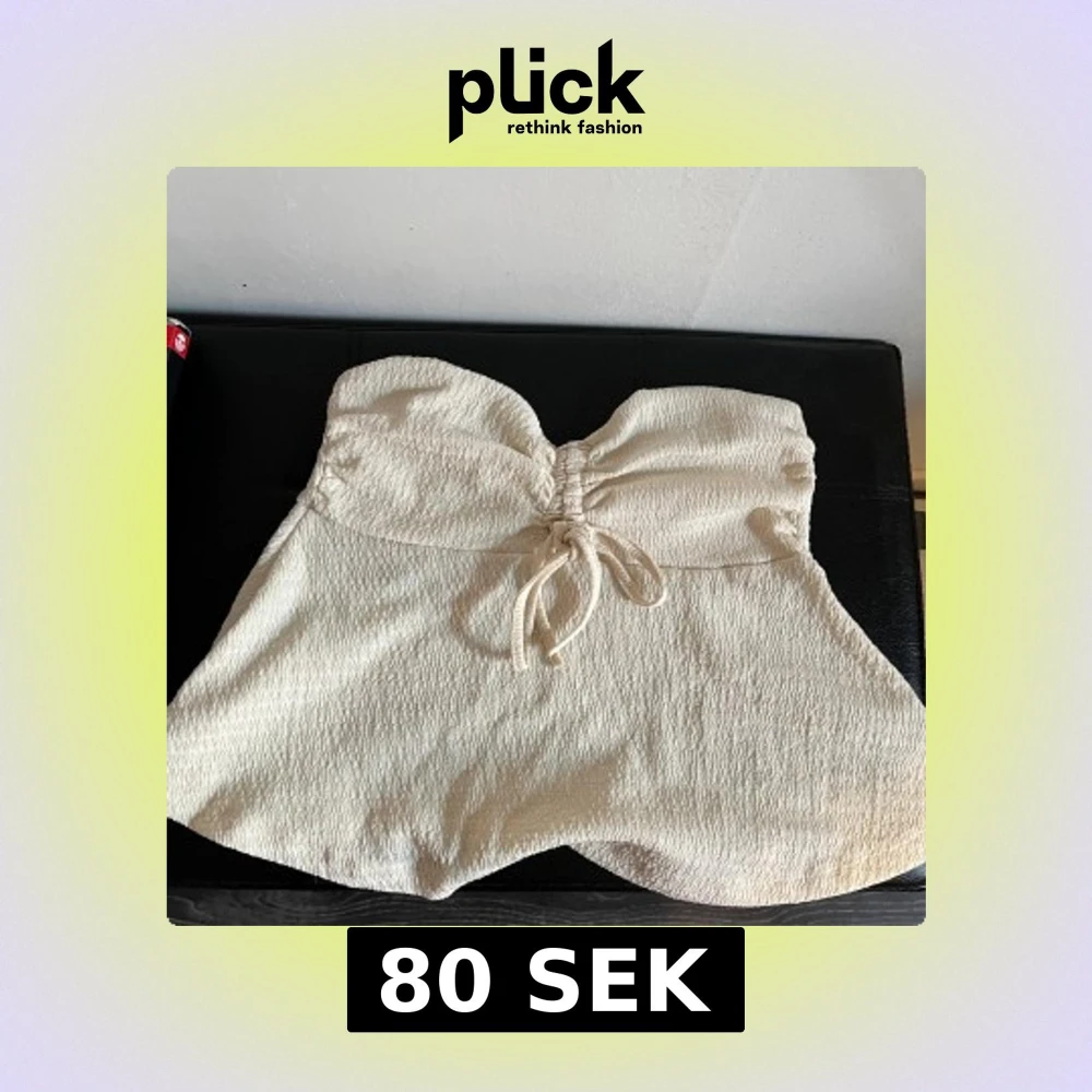 Säljer en söt axelbandslös tröja i gul med struktur. Tröjan har en snygg knytning framtill. Perfekt för varma dagar eller sommarens tillfällen.