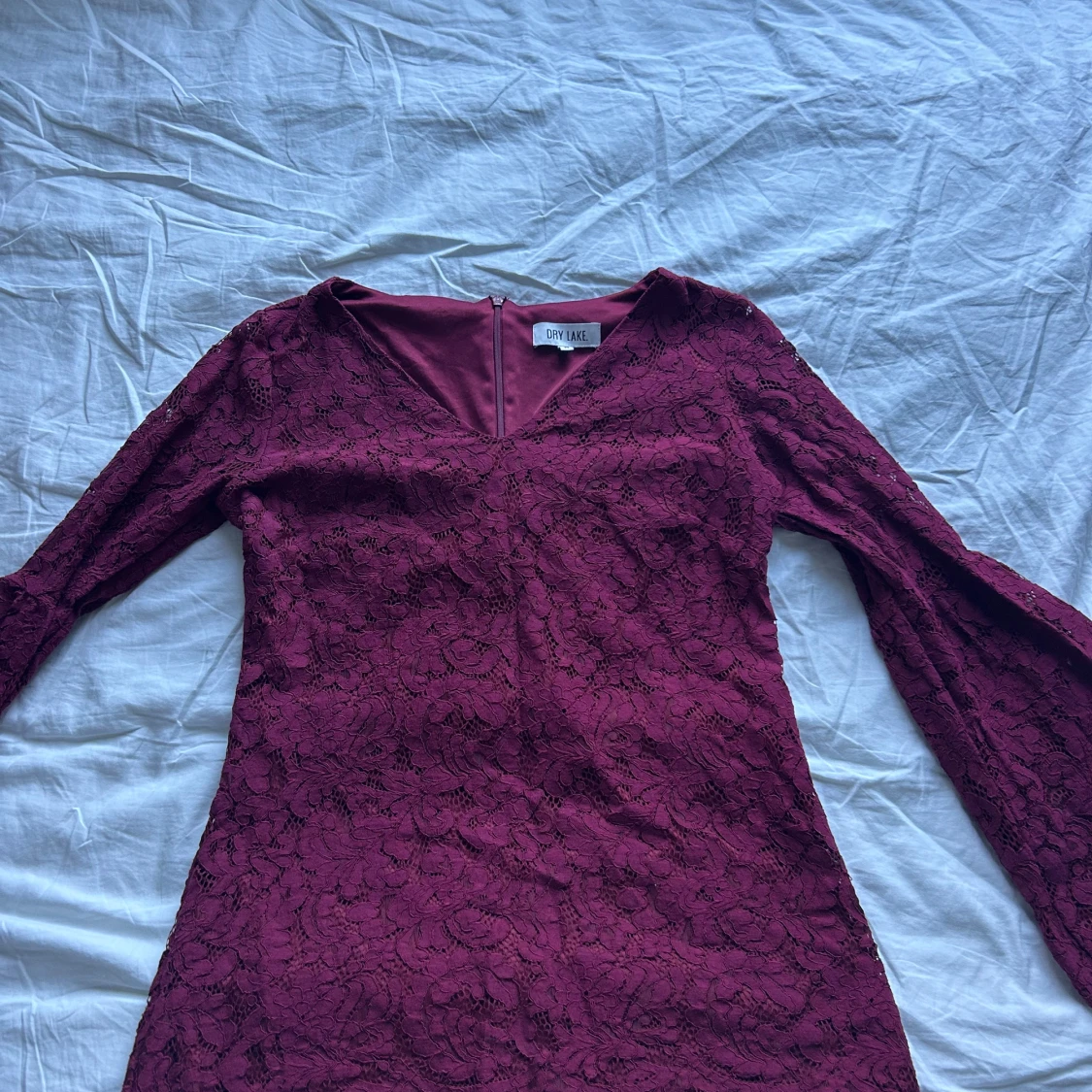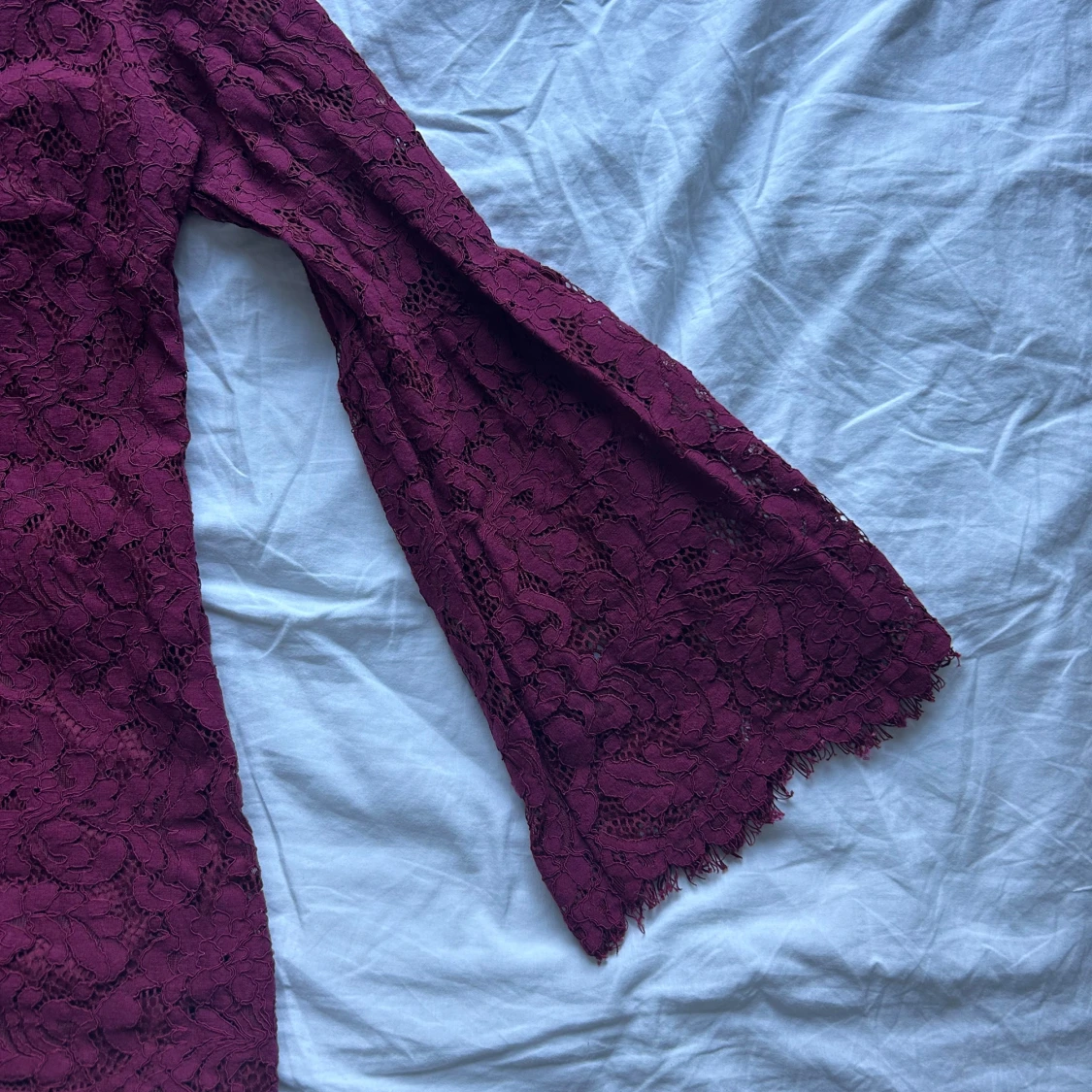 Supersnygg vinröd tröja från Dry Lake med v-ringning och långa utsvängda ärmar. Tröjan är täckt av blommig spets och har dragkedja i ryggen. Perfekt för dig som vill sticka ut med en elegant och trendig look.