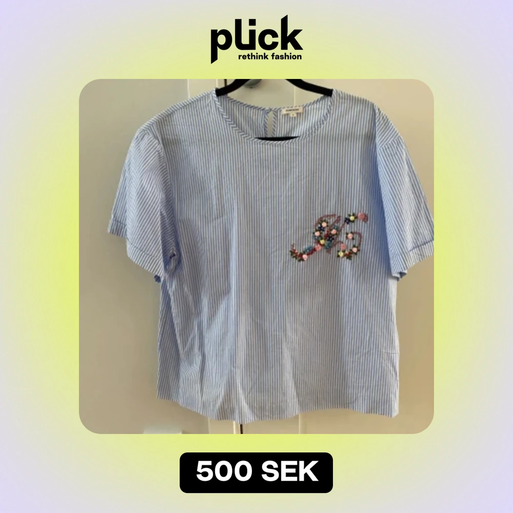 Blusen har korta ärmar. Mått Över axeln: ca 49 cm Längd från axeln och ner: ca 61 cm Kommer från ett djur och rökfritt hem.