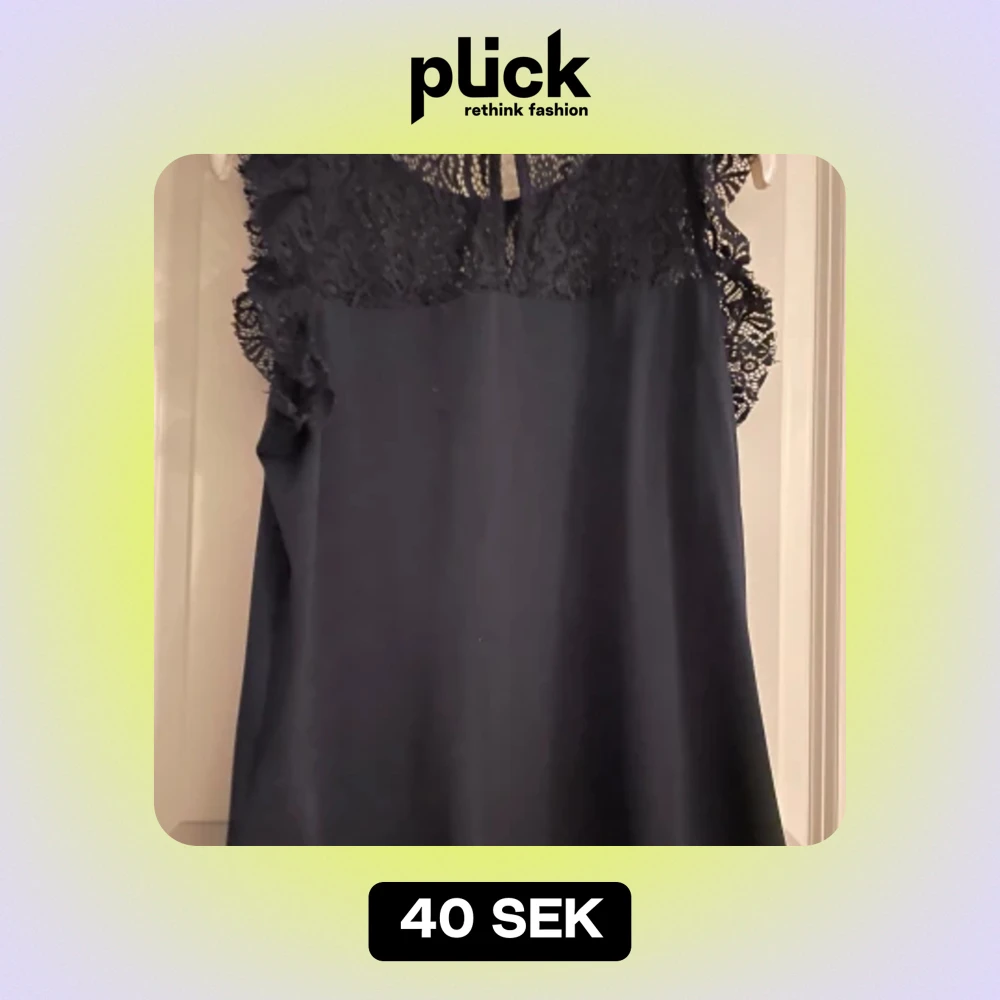Marinblå blus från Vero Moda, sparsamt använd och i bra skick. Kort spets på ärmen, så blusen blir som ett linne.