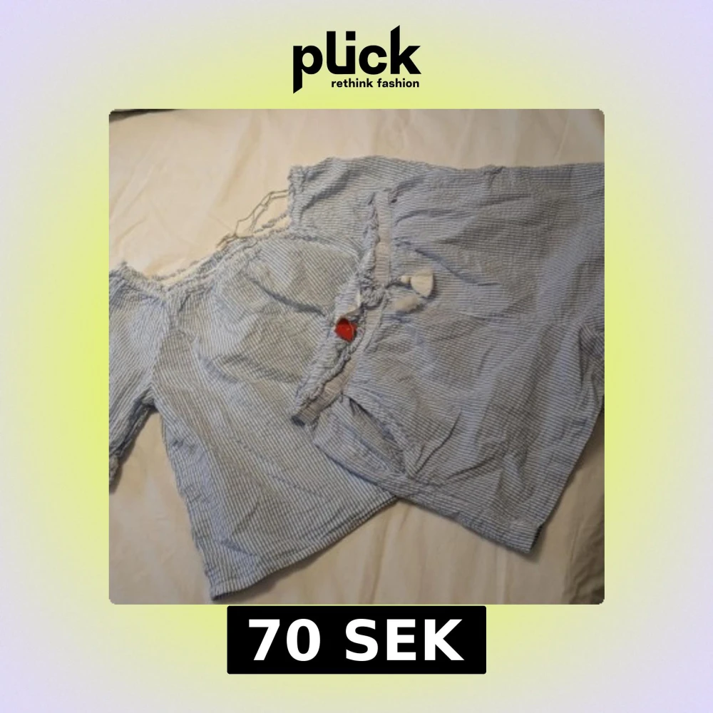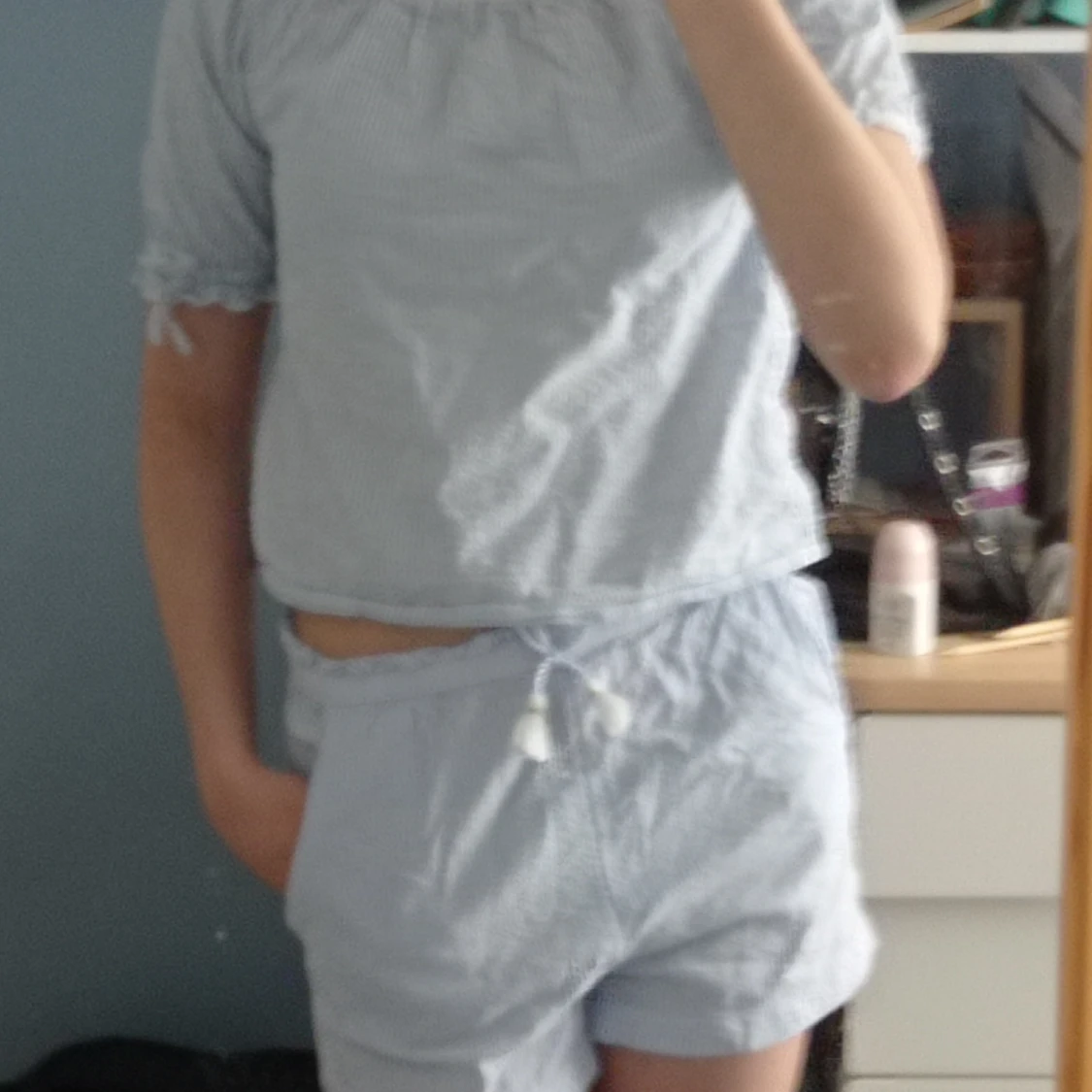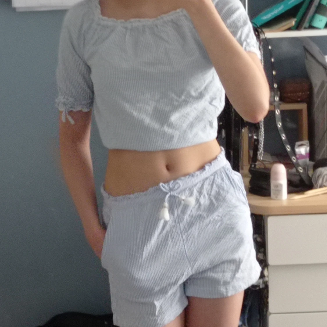 Superfint matchande sommarset från Hm, använd ett fåtal gånger och i bra skick. Första bilderna har jag scrunchat upp tröjan, sista är hur den sitter utan. Perfekt nu när det är sommar:)