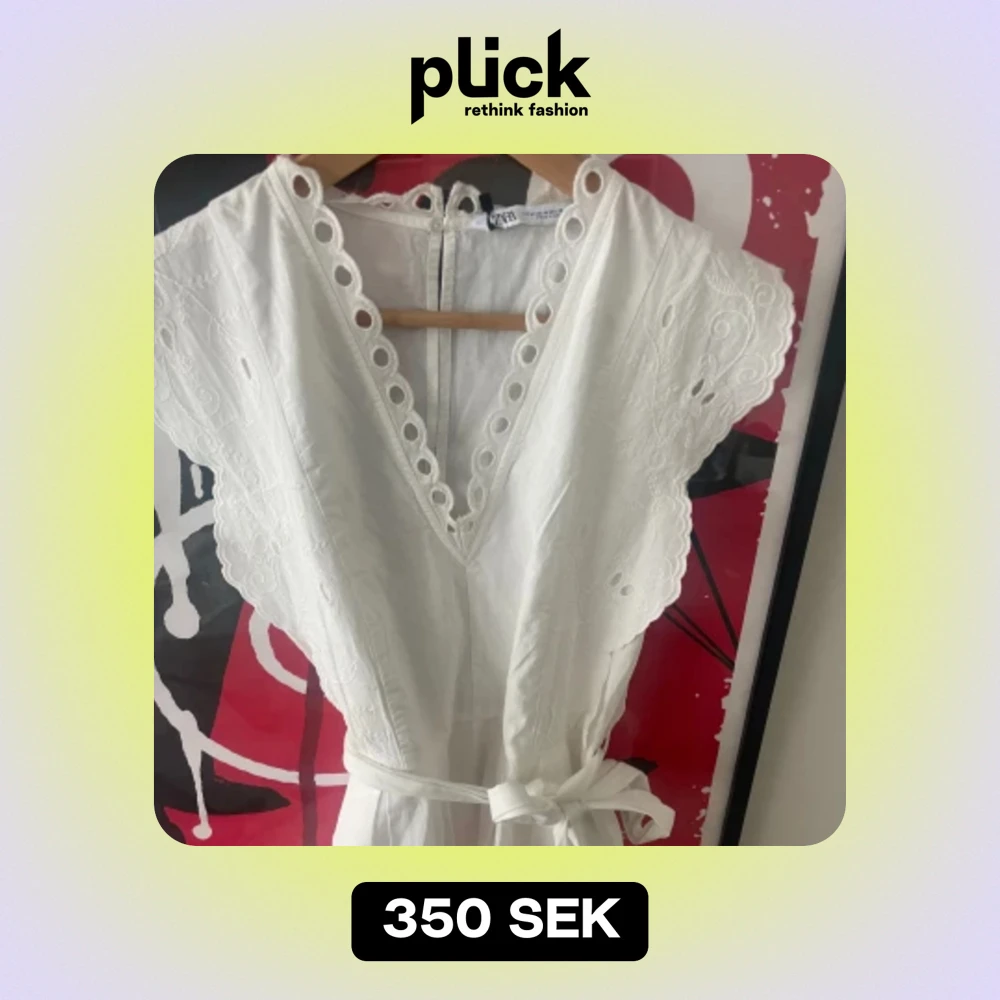 Nyskick zara byxdress/ jumpsuit vit med broderier. Storlek 38.