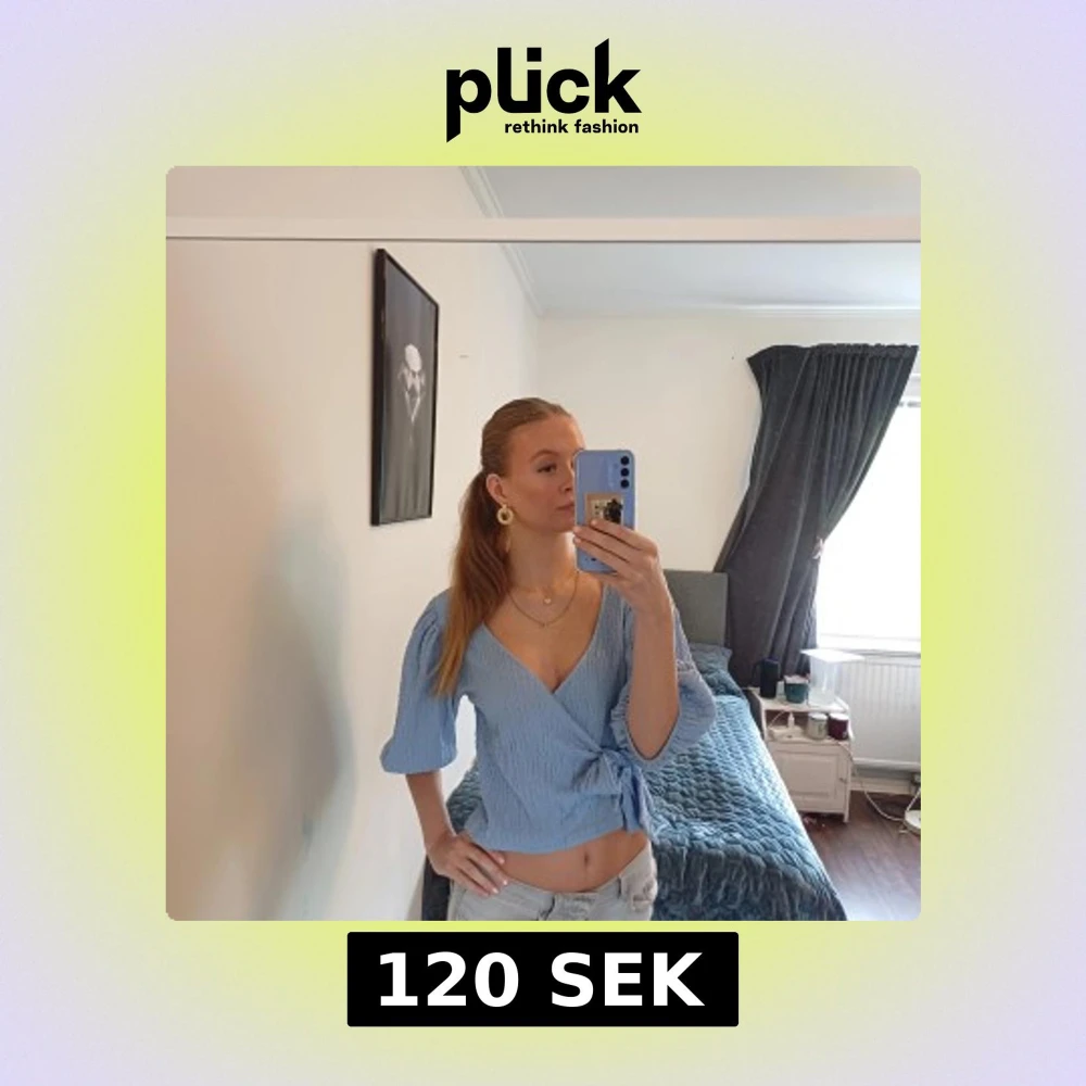 Säljer en ljusblå blus från Monki med puffiga korta ärmar och snygg knytning framtill. Blusen har en ribbad, lite krinklad struktur. Den är croppad i modellen. Perfekt för dig som gillar att va lite ned unik och kanske sticka ut lite. Den är dupetfin men inte min smak ❤️ storlek M/S