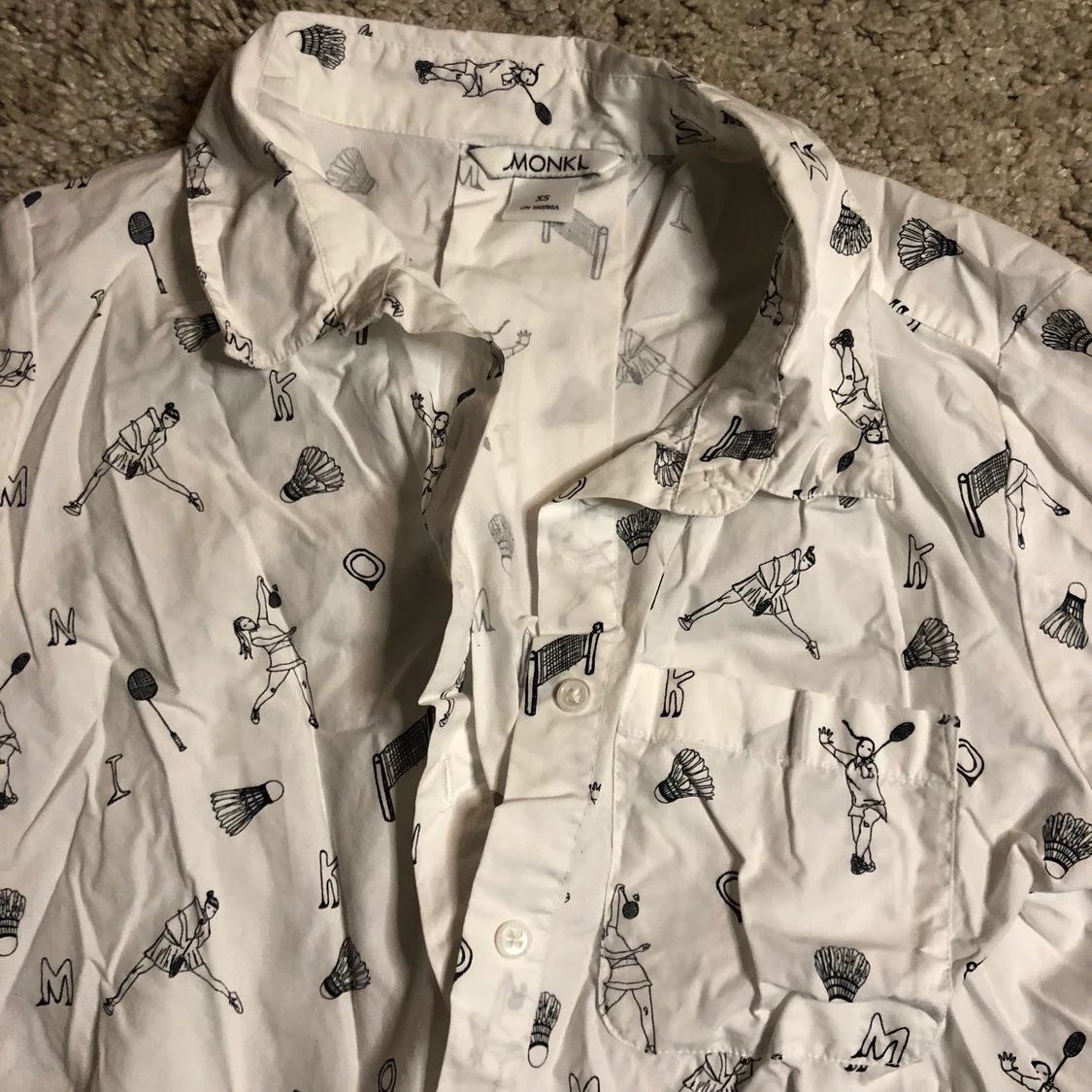 snygg cropped blus/skjorta från monki med badminton motiv