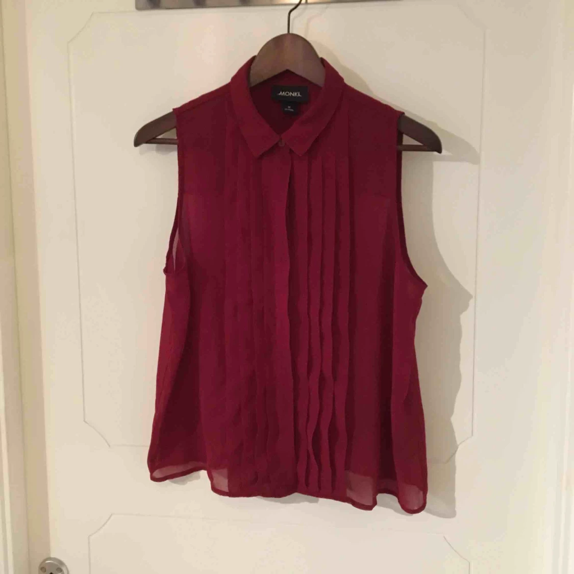 Vinröd blus, från Monki i ett lite genomskinligt material. Möte gärna upp i Göteborg, frakt ingår ej.