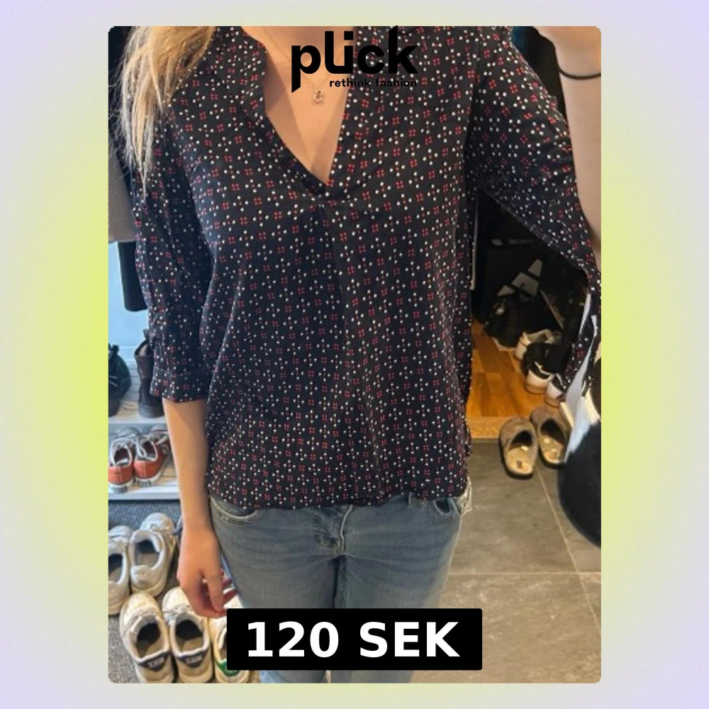 Jättesöt mörkblå blus med röda och vita detaljer. Köpt på MQ för länge sen, använd några gånger men finns inga defekter. Finns en knytning på var ärm, se bild 3. Kom privat för frågor/bilder ❤️
