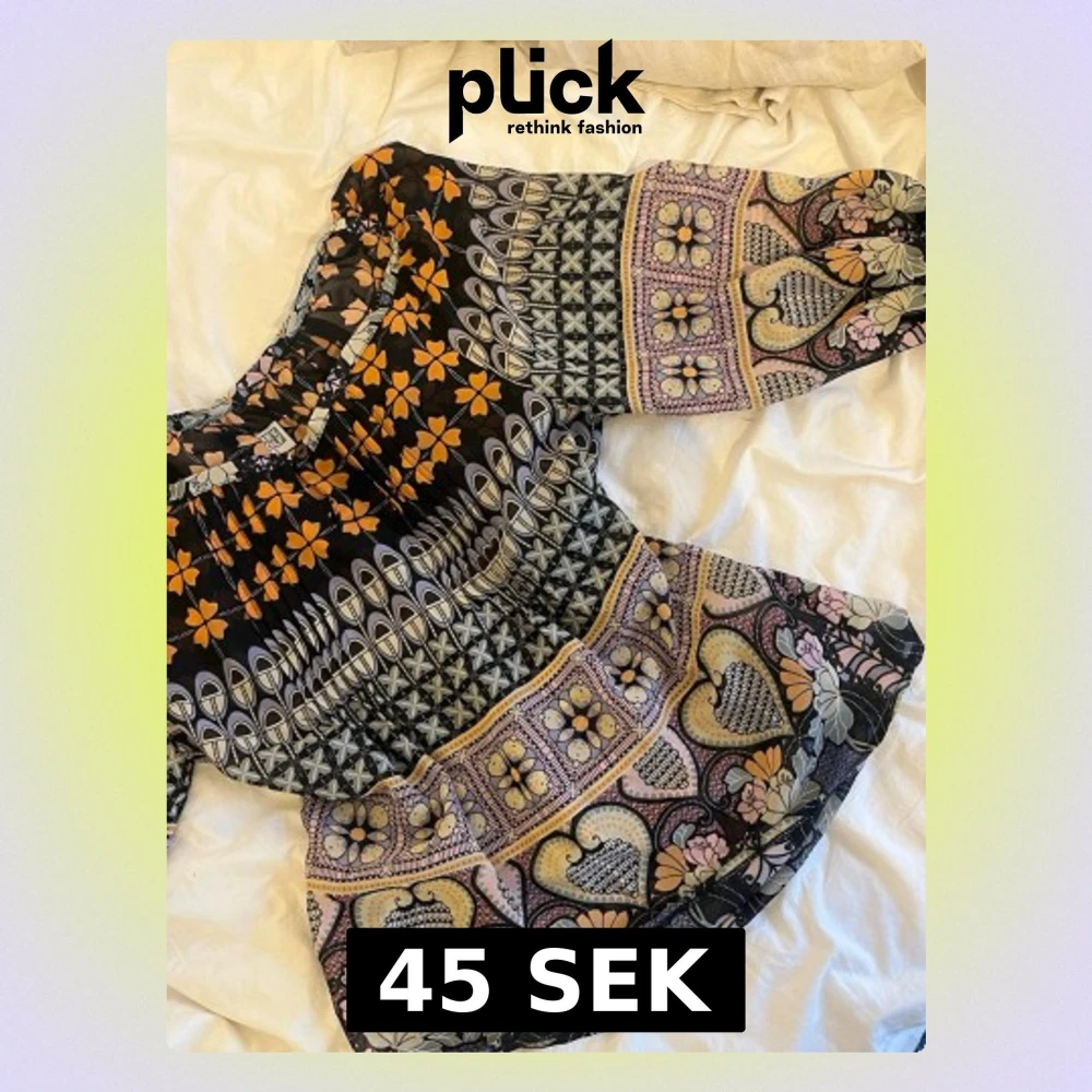 Säljer en färgglad blus med unikt mönster. Blusen har bred resår vid axlarna och trekvartsärm. Materialet är tunt och luftigt, perfekt för en trendig och avslappnad stil. Skriv vid frågor och pris kan diskuteras!💕💕