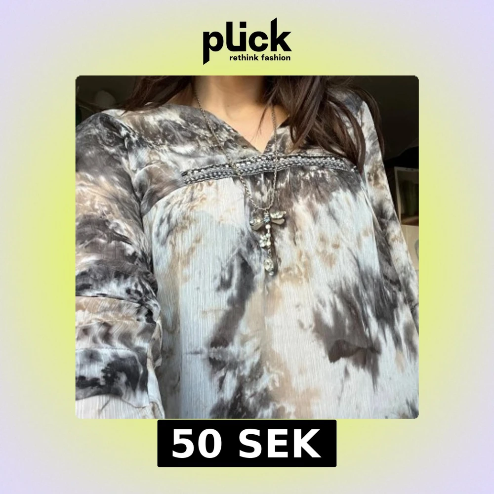 En fin blus med ett nästan batik mönster. Fin detalj vid bysten och ett härligt luftigt material. Storlek 36/38 alltså S på lappen.