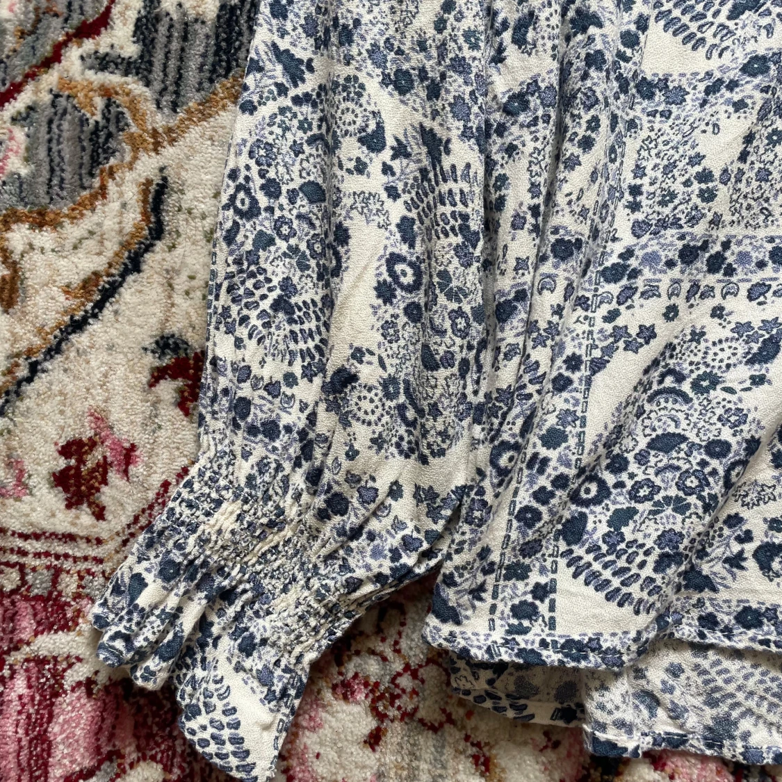 Blusen har inte använts på länge och är därför jag säljer den. Vid händerna är det som lite tjockare smock och vid kragen fina små volanger🌟