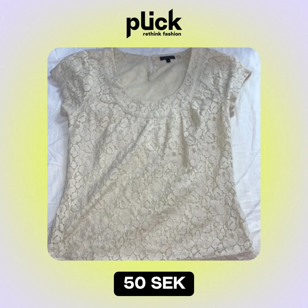 Mönstrad uringad beige blus från Stockh Lm! Bra skick förutom en knapp som gått av bak vid spännet i nacken där jag har sytt ihop kanterna.
