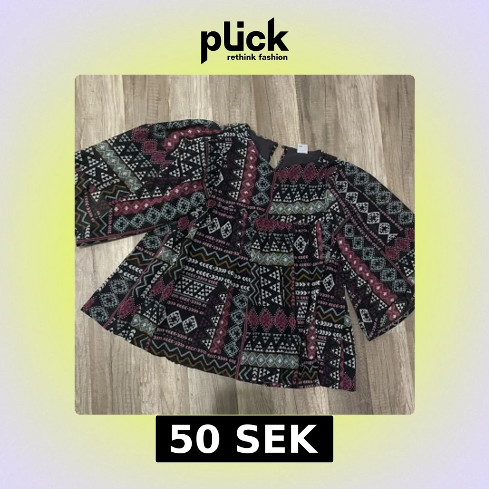 Säljer en blus från Lindex med mönster. Den har medellånga, vida ärmar och en avslappnad passform. Perfekt för dig som gillar unika prints och bekväma plagg. Det e mesh(?) och innanför ett tyg för att inte göra fen genomskinligt! Fungerar även som xs