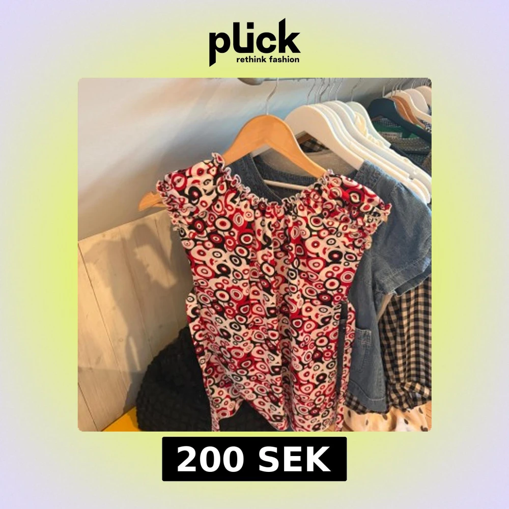 Säljer en topp från Roco med ett coolt cirkelmönster i rött, svart och vitt. Klänningen har elastisk halsringning med volangdetaljer och knyt i midjan. Materialet är 65% bomull och 35% polyester, vilket gör den både mjuk och lätt. Perfekt för dig som gillar färg och mönster!