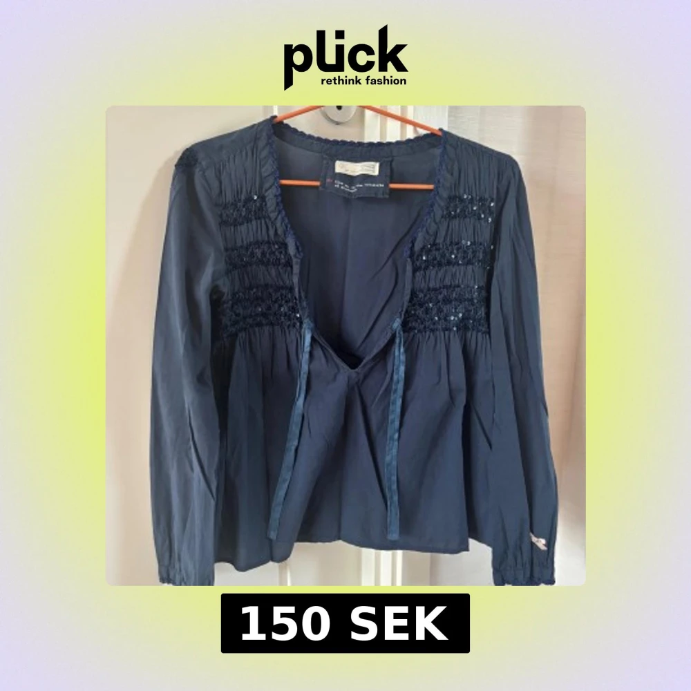 Supersöt mörkblå blus från Odd Molly i storlek S med långa ärmar, smockdetaljer och diskreta paljetter framtill. Fint skick!💙