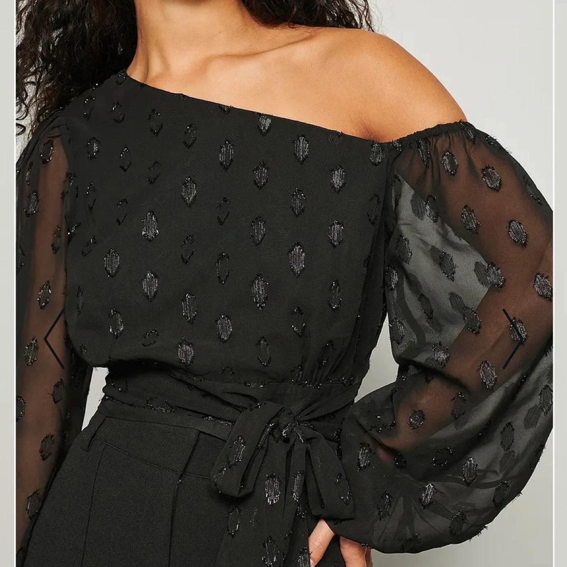 Festtopp från nakd, nypris 399. Storlek 40. Recycled assymetrisk glitterblus. Tar emot bud, kan mötas upp i Sthlm eller skicka