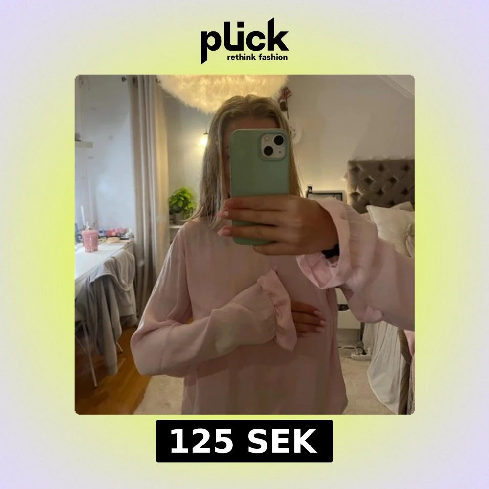 Supersöt ljusrosa blus från NA-KD i storlek 36. Blusen har långa ärmar, volangdetaljer vid halsringningen