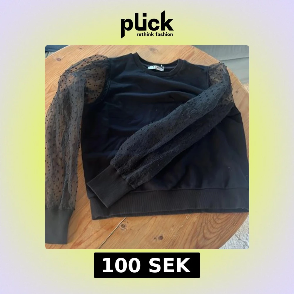 Snygg svart tröja från NAKD med unika transparenta ärmar i prickigt mönster. Tröjan har en rund halsringning och ribbade muddar vid ärmslut och nederkant.