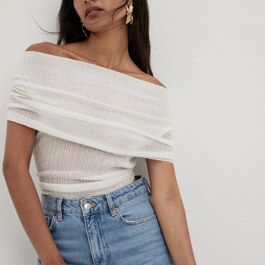 Så snygg off shoulder topp från NA-KD strl M, den passade tyvärr inte mig och returtiden har passerat, oanvänd Nypris 349