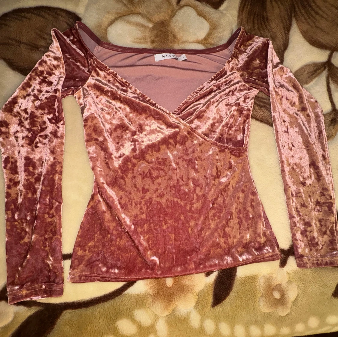 NA-KD. ”Velvet Off Shoulder Top”. Långärmad. V-ringning. Stretchig. Material i sammet. Figurnära, figurkramande och framhävande. Fin rosa färg. Storlek: S. Material: 92% polyester, 8% elastan. Maskintvätt i 30 grader. Skick: Mycket fint. Nypris: 199 kr. MÅTT: Längd: 48,5 cm. Bredd: 38 cm. Ärmlängd: 55 cm. Axelbredd: 36 cm. V-ringning djup: 22,5 cm. Midja: 30,5 cm.